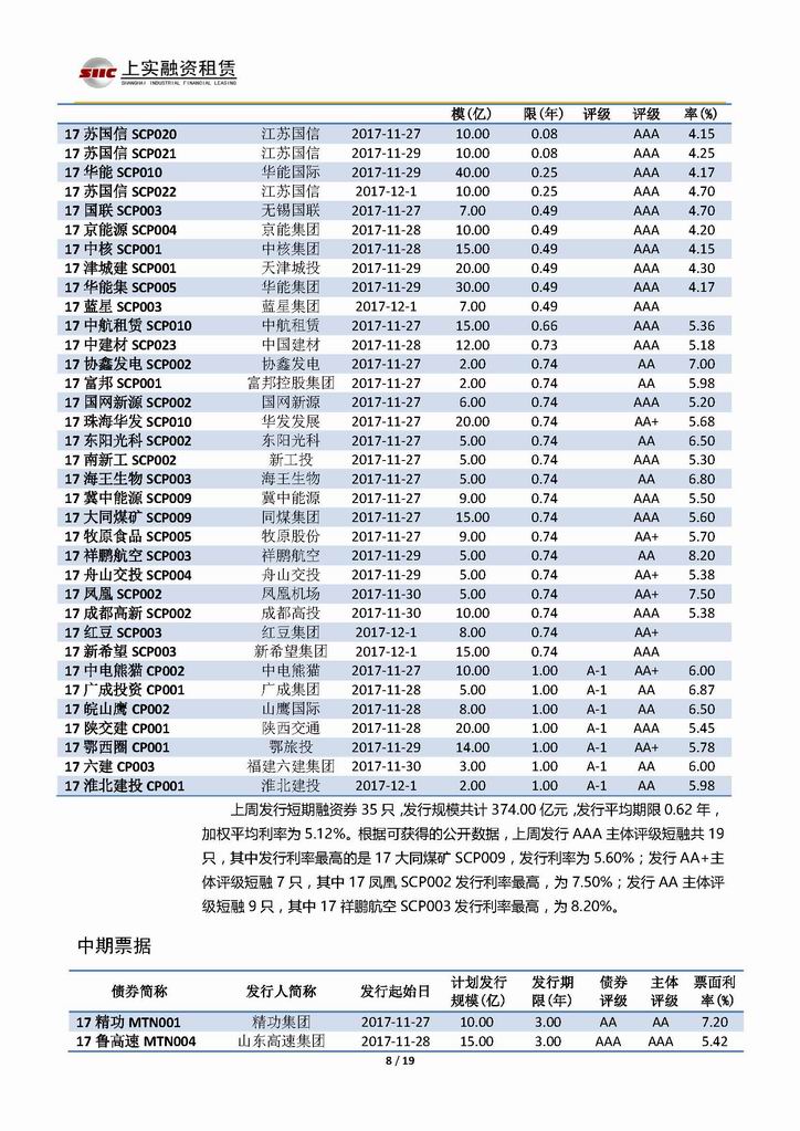 | 當(dāng)前位置:新聞中心 > 上實(shí)-融資工具周報(bào)20171124-20171201 | |||||