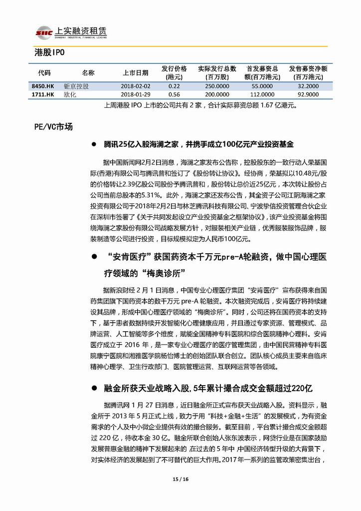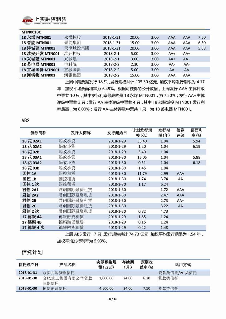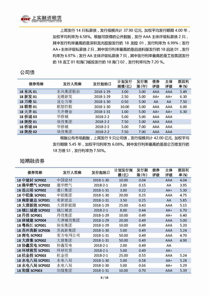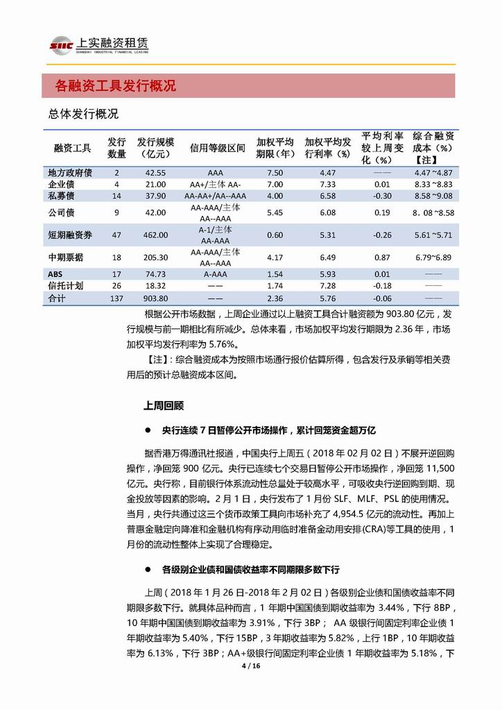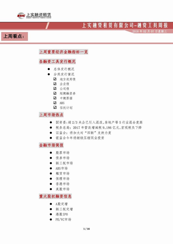 | 當(dāng)前位置:新聞中心 > 上實-融資工具周報20180126-20180202 | |||||