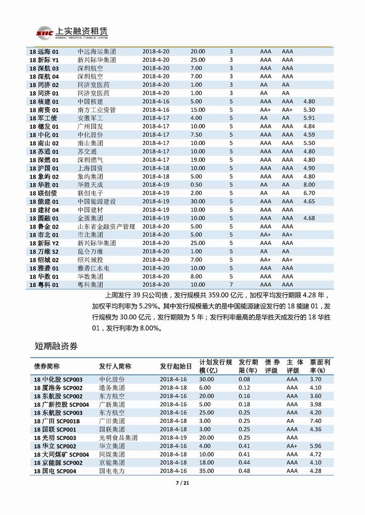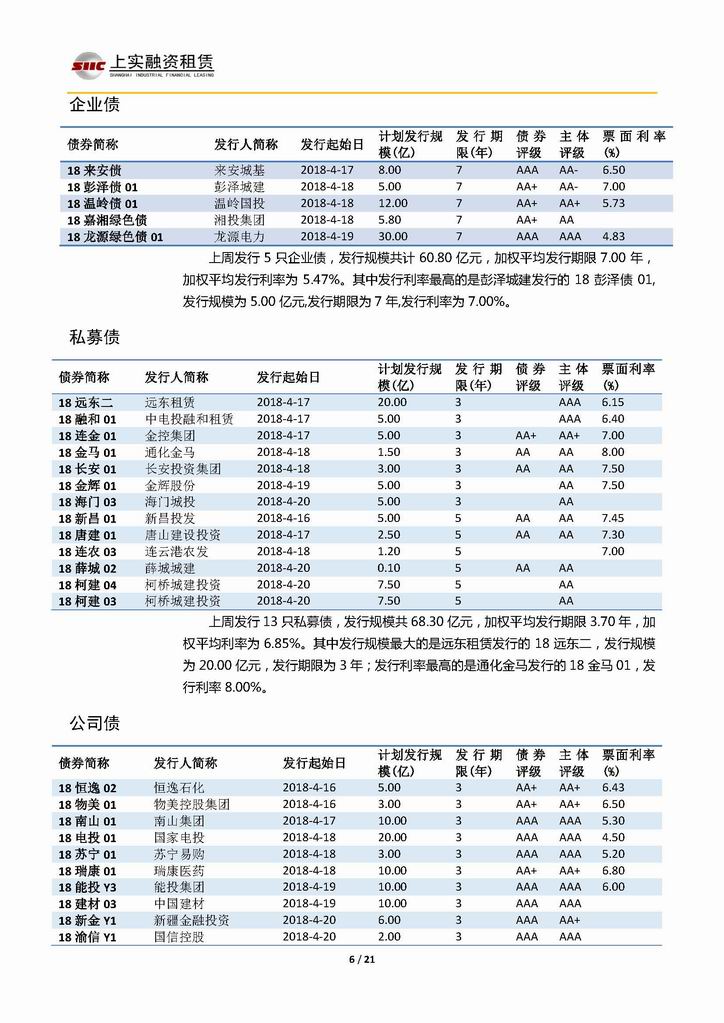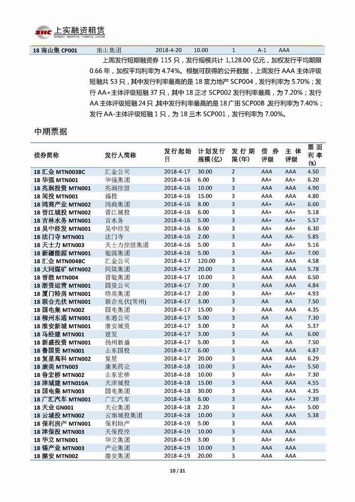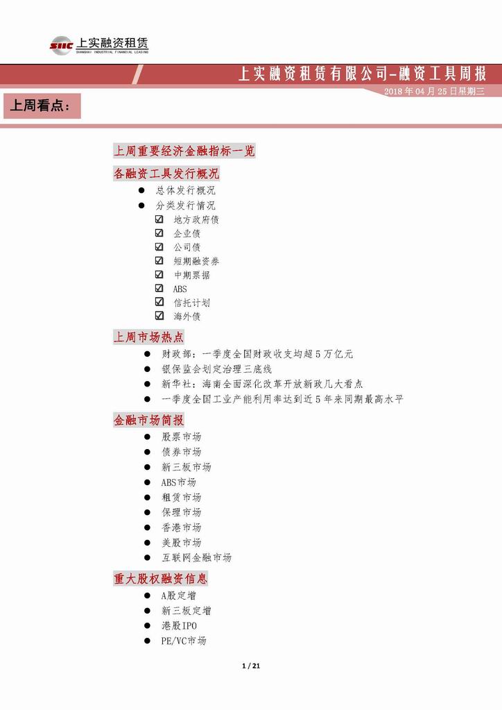 | 當(dāng)前位置:新聞中心 > 上實(shí)-融資工具周報(bào)20180413-20180420 | |||||