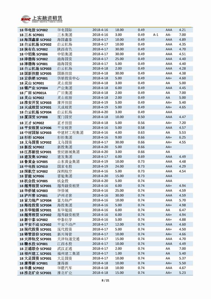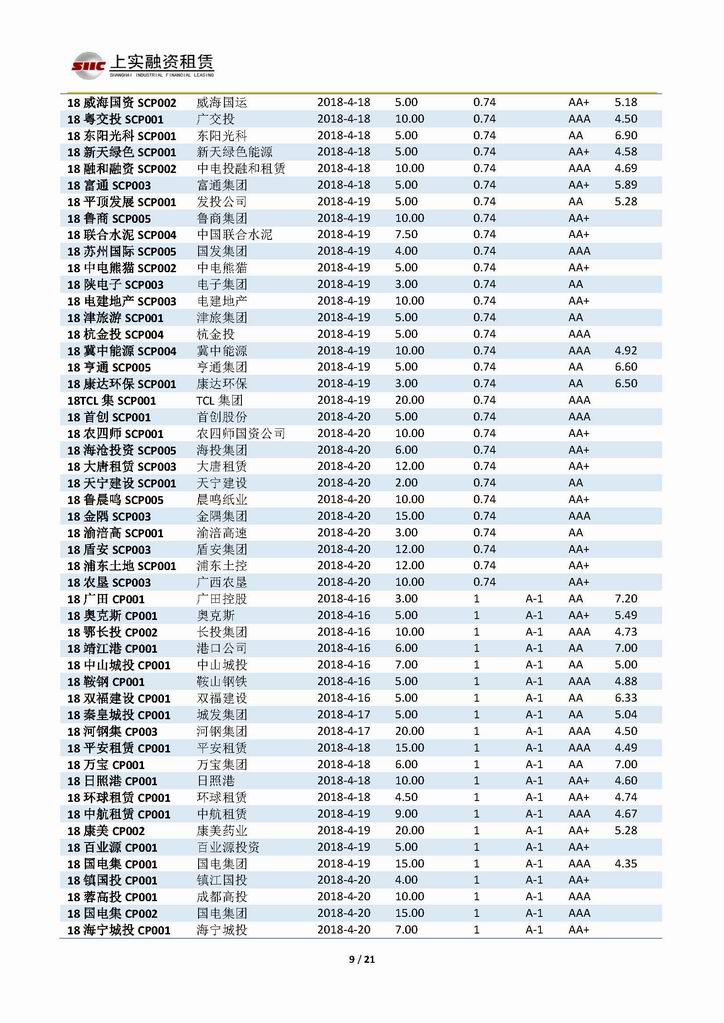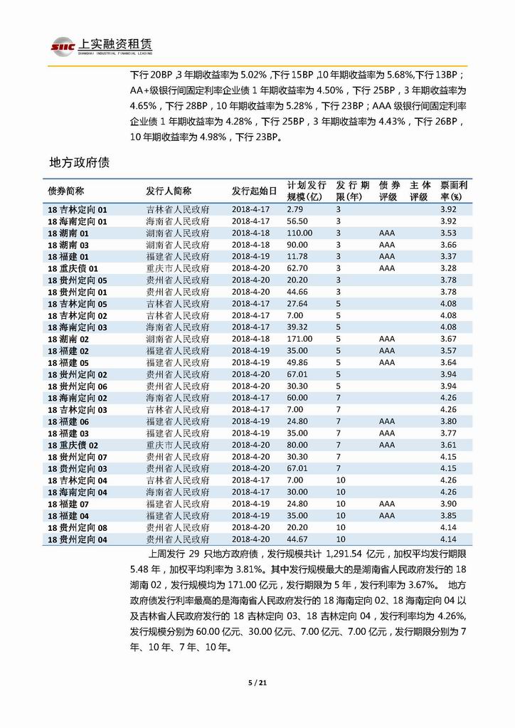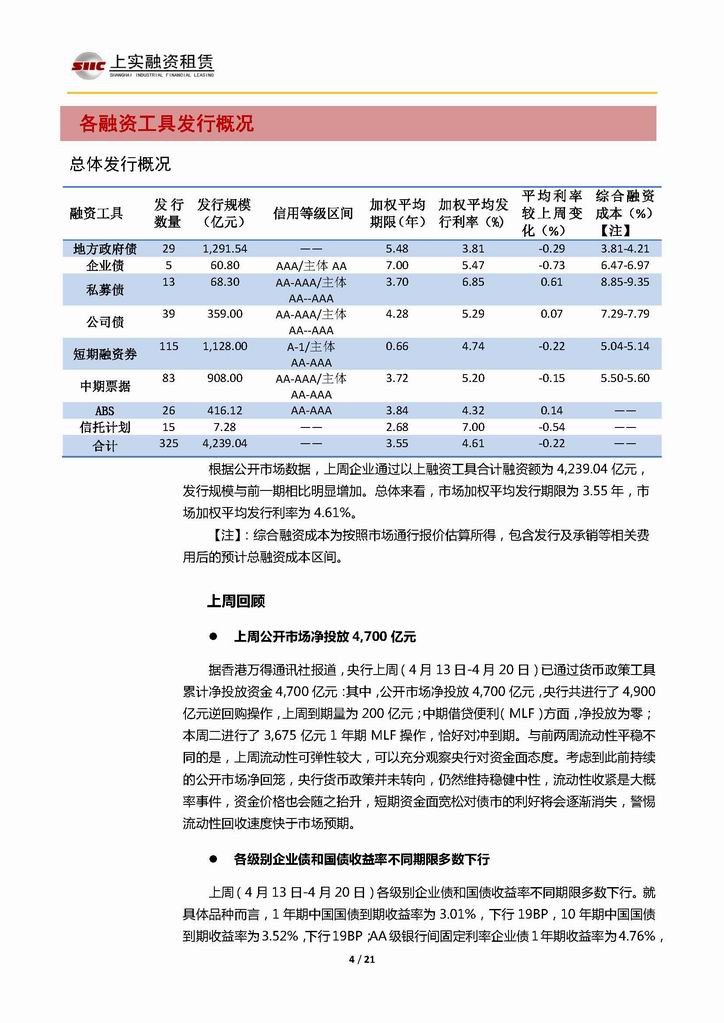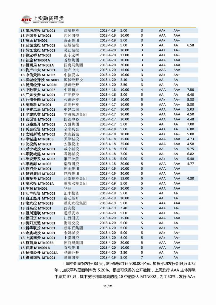| 當(dāng)前位置:新聞中心 > 上實(shí)-融資工具周報(bào)20180413-20180420 | |||||