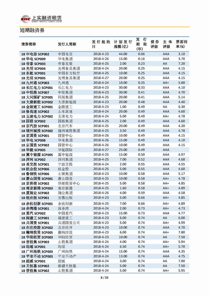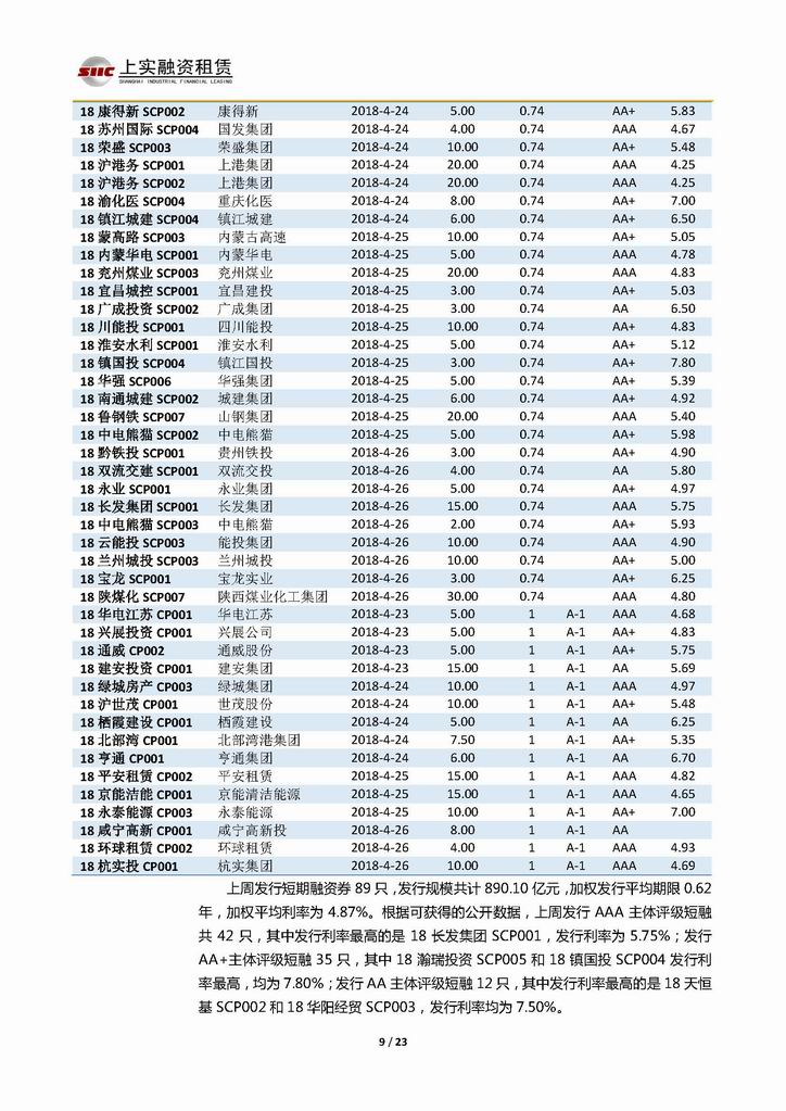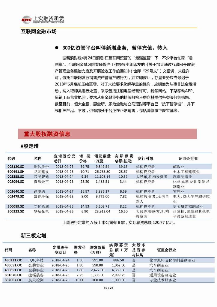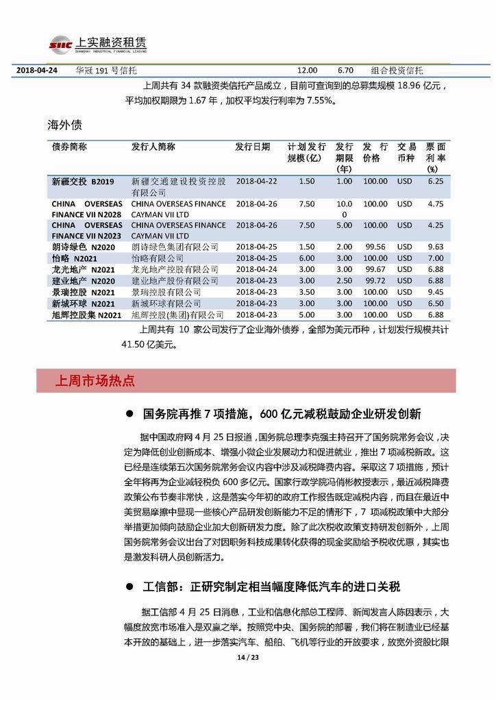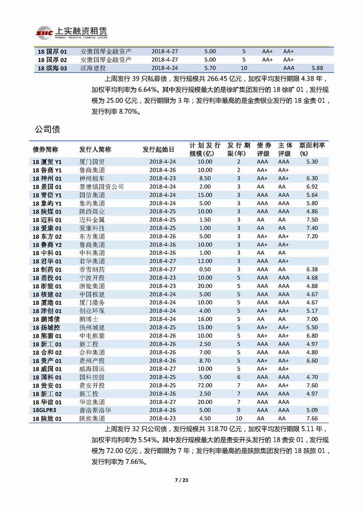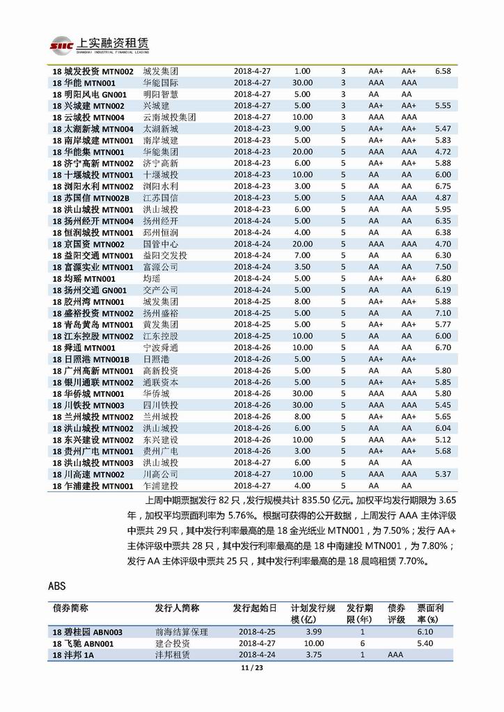 | 當前位置:新聞中心 > 上實-融資工具周報20180420-20180427 | |||||