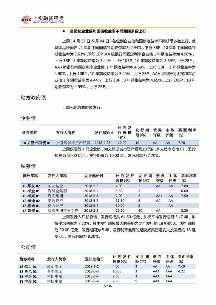 | 當(dāng)前位置:新聞中心 > 上實-融資工具周報20180427-20180504 | |||||