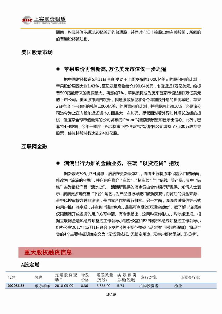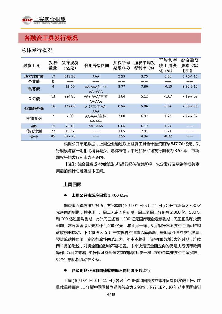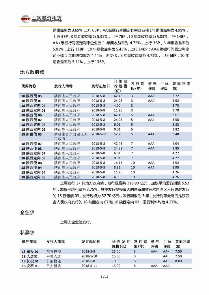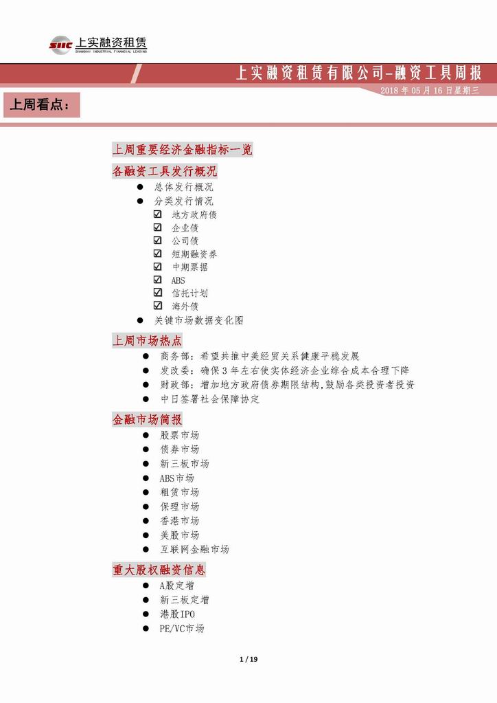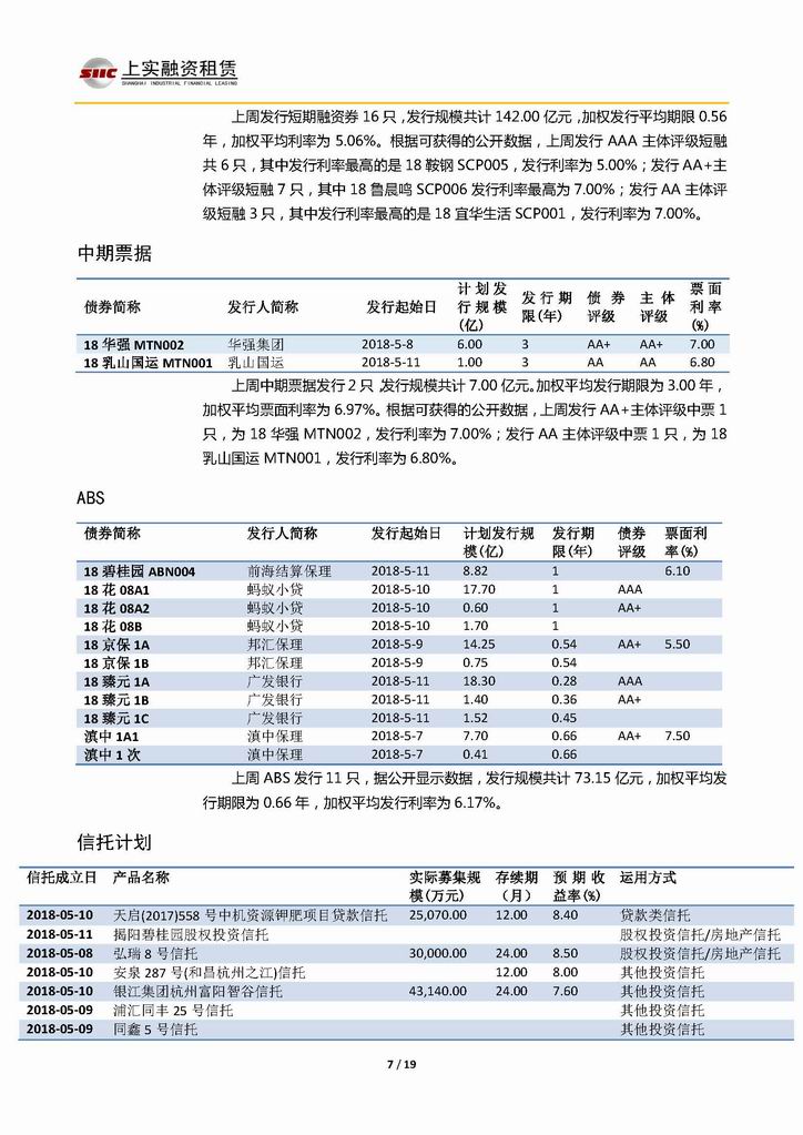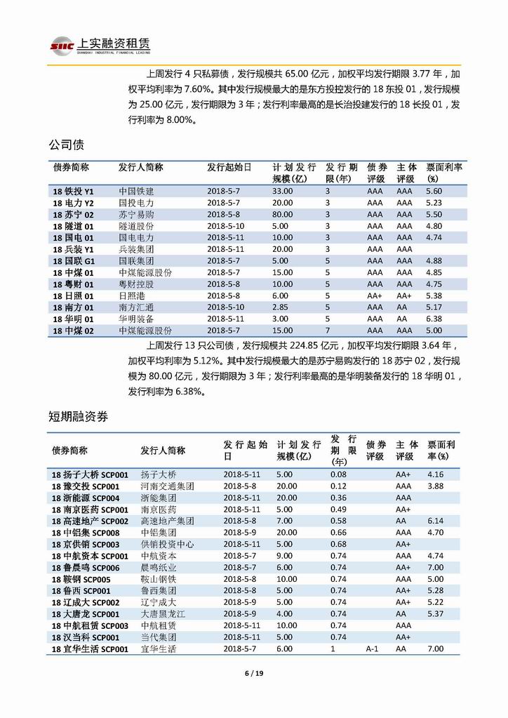 | 當前位置:新聞中心 > 上實-融資工具周報20180504-20180511 | |||||