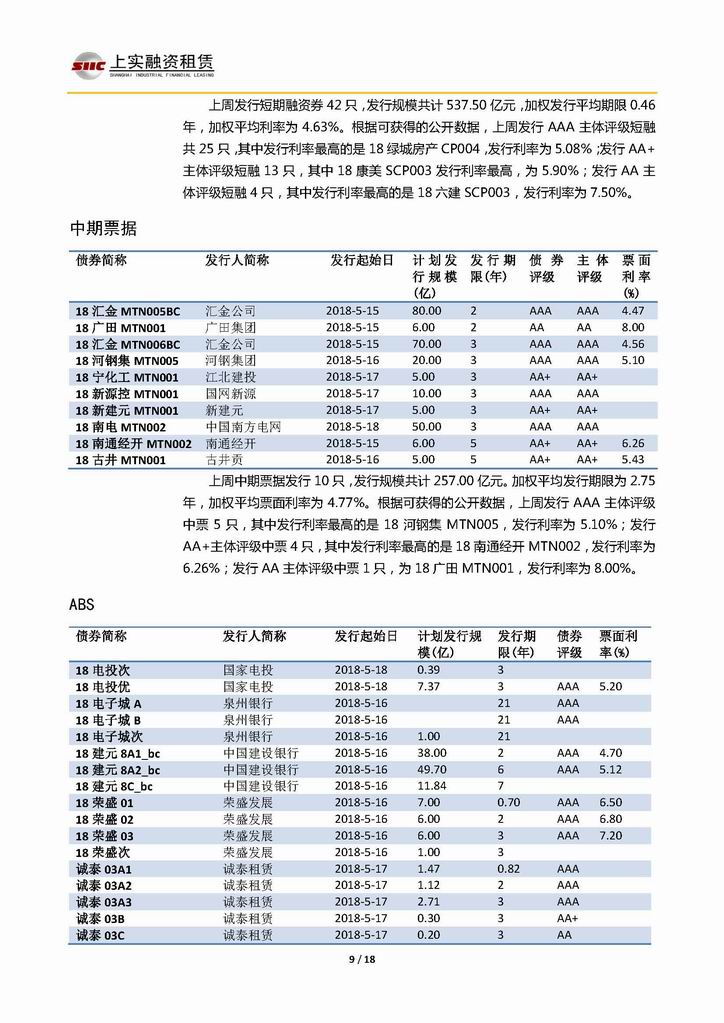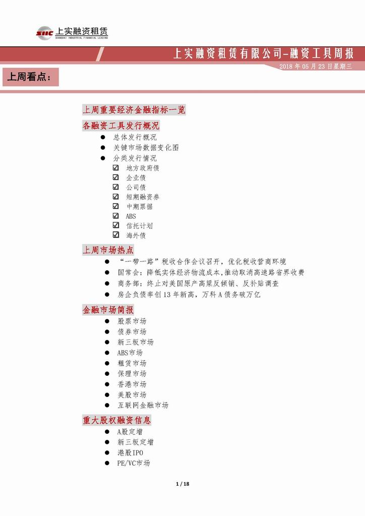 | 當(dāng)前位置:新聞中心 > 上實(shí)-融資工具周報(bào)20180511-20180518 | |||||