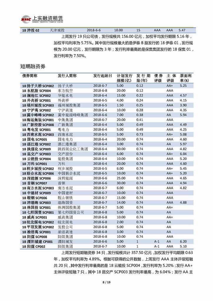 | 當(dāng)前位置:新聞中心 > 上實(shí)-融資工具周報(bào)20180601-20180608 | |||||