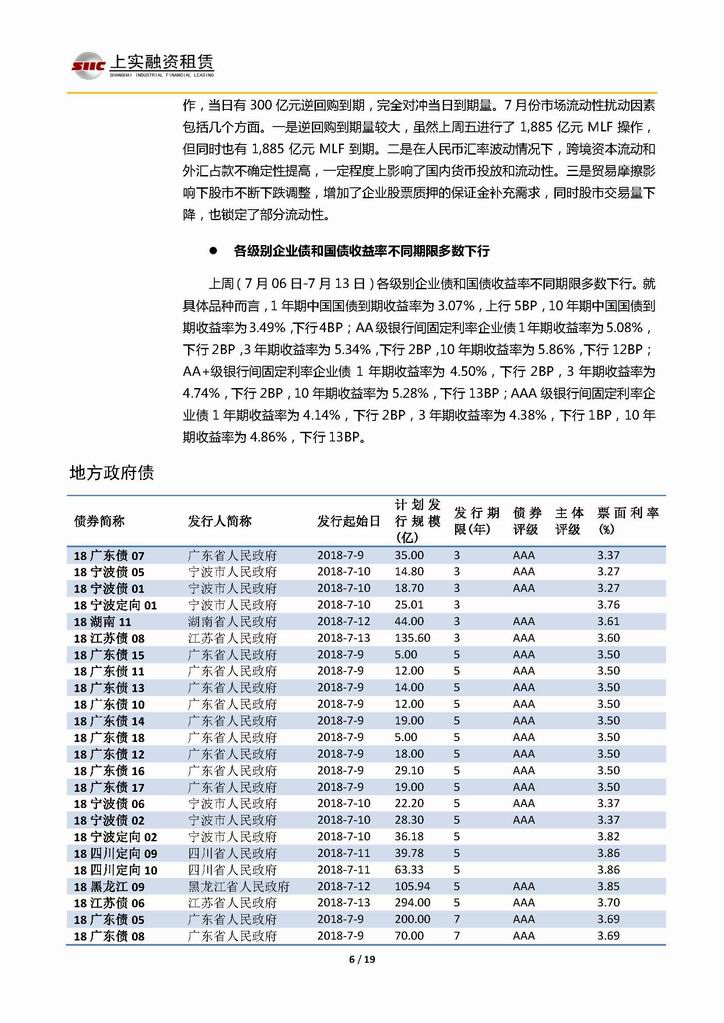 | 當前位置:新聞中心 > 上實-融資工具周報20180706-20180713 | |||||