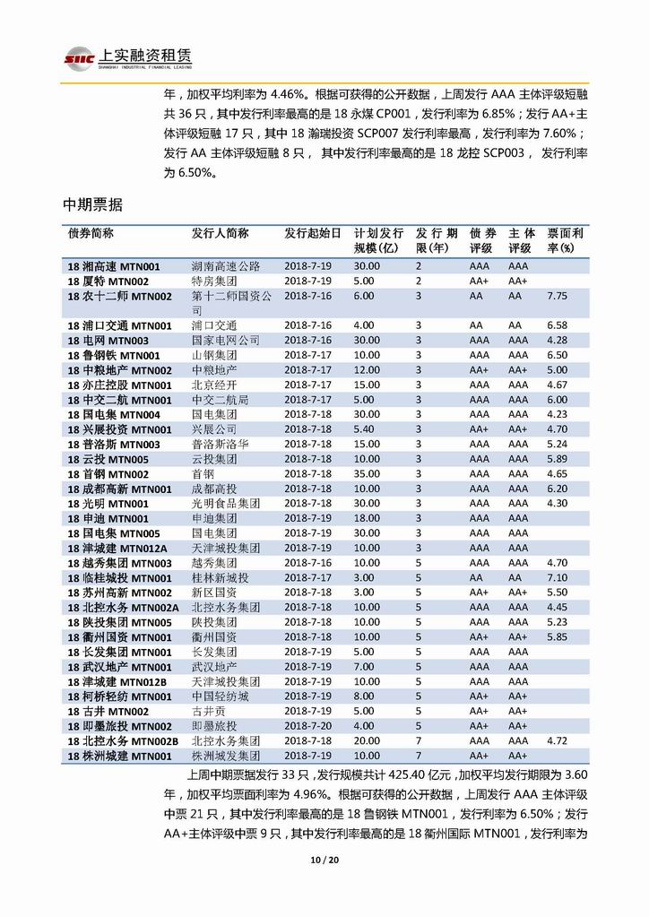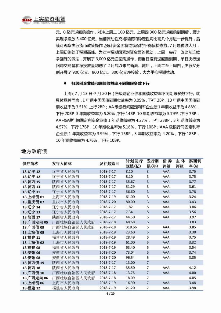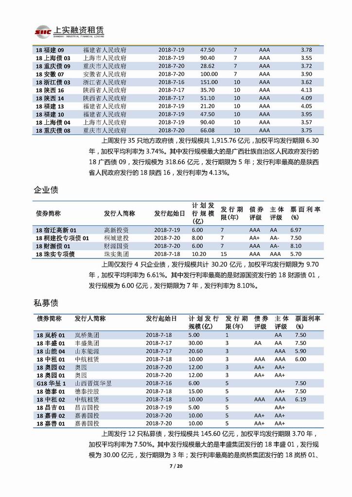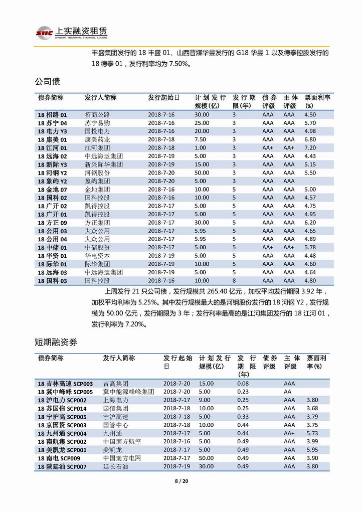 | 當(dāng)前位置:新聞中心 > 上實(shí)-融資工具周報(bào)20180713-20180720 | |||||