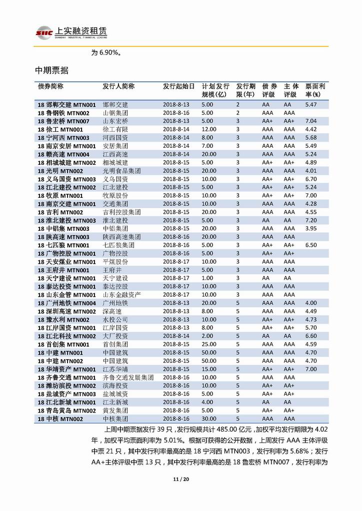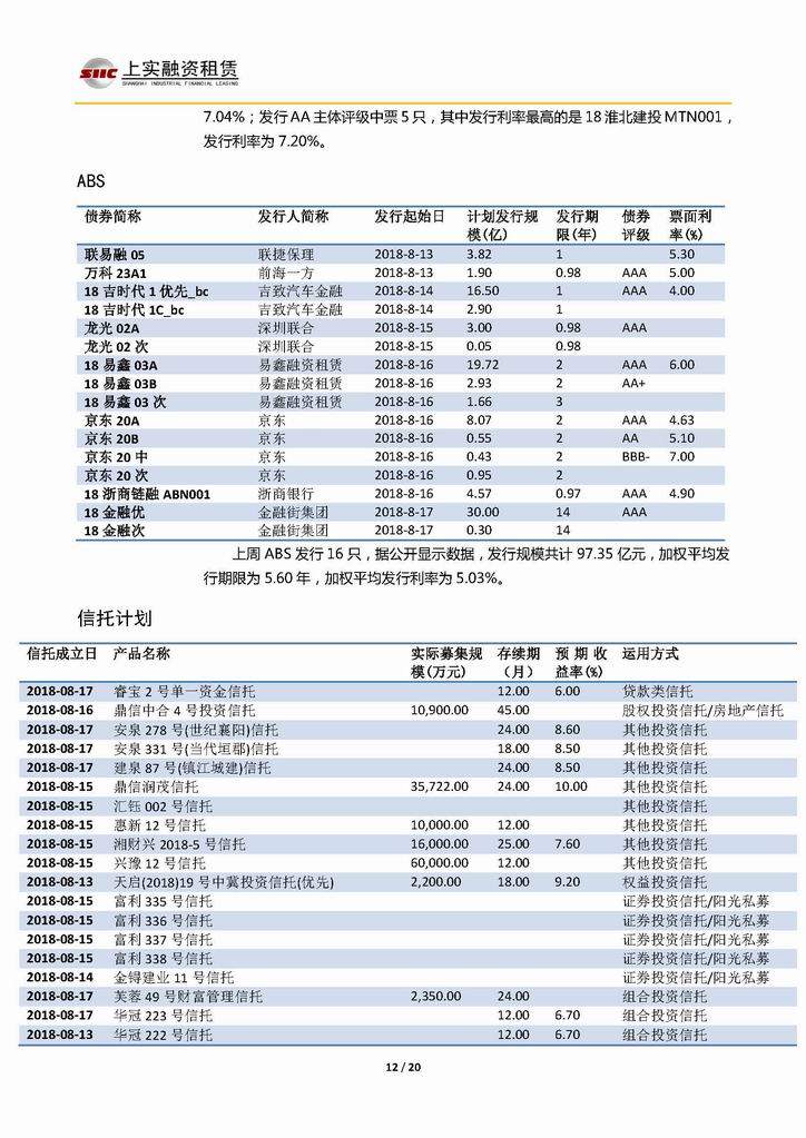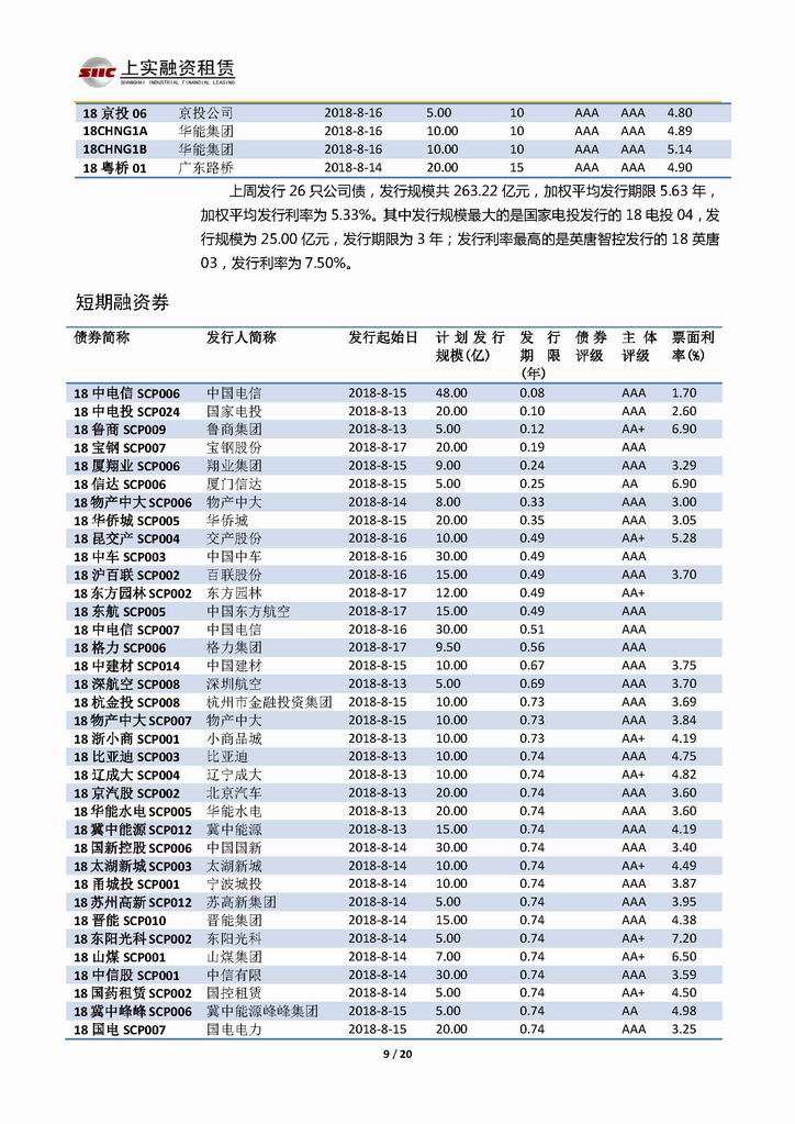 | 當(dāng)前位置:新聞中心 > 上實(shí)-融資工具周報(bào)20180810-20180817 | |||||