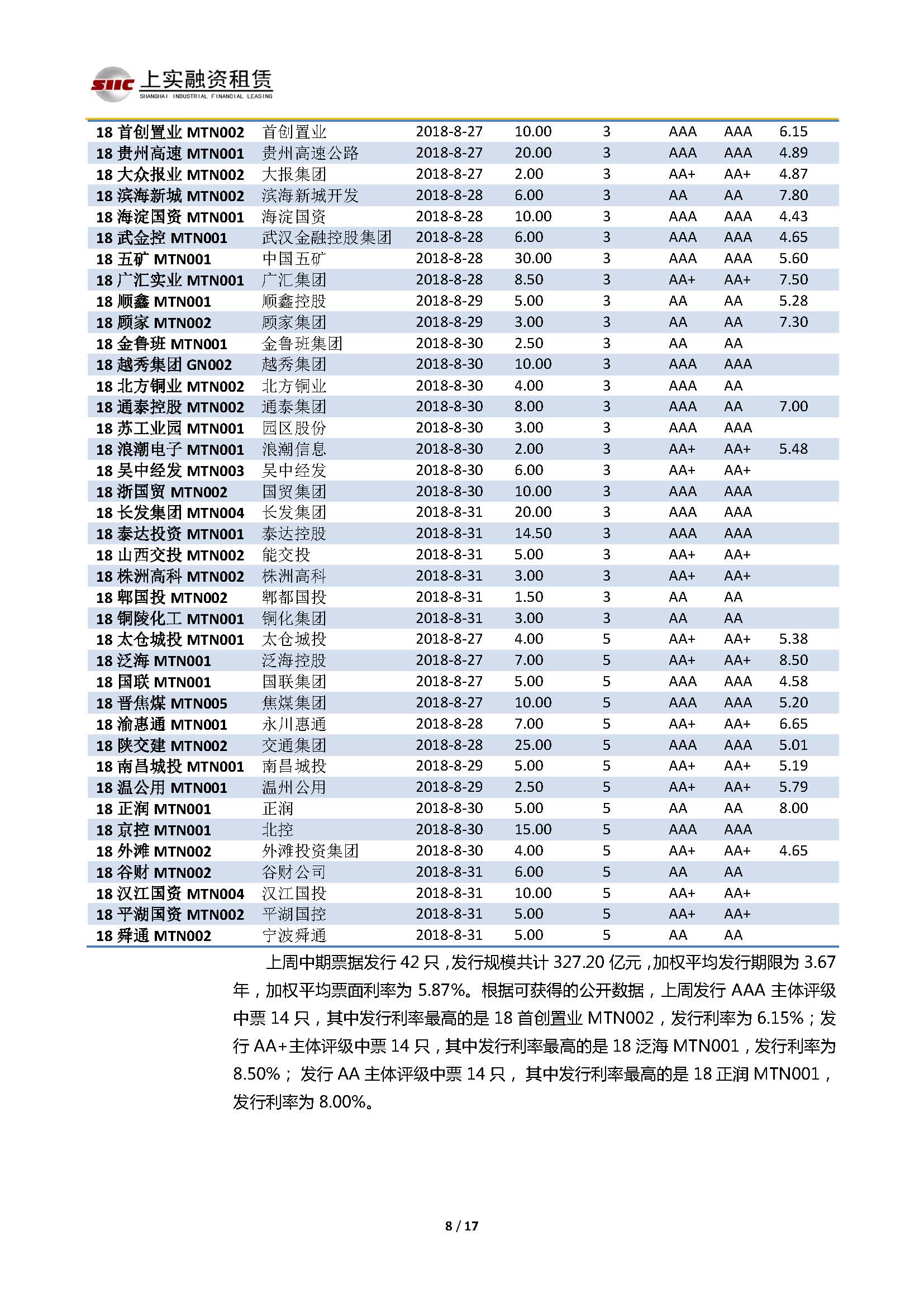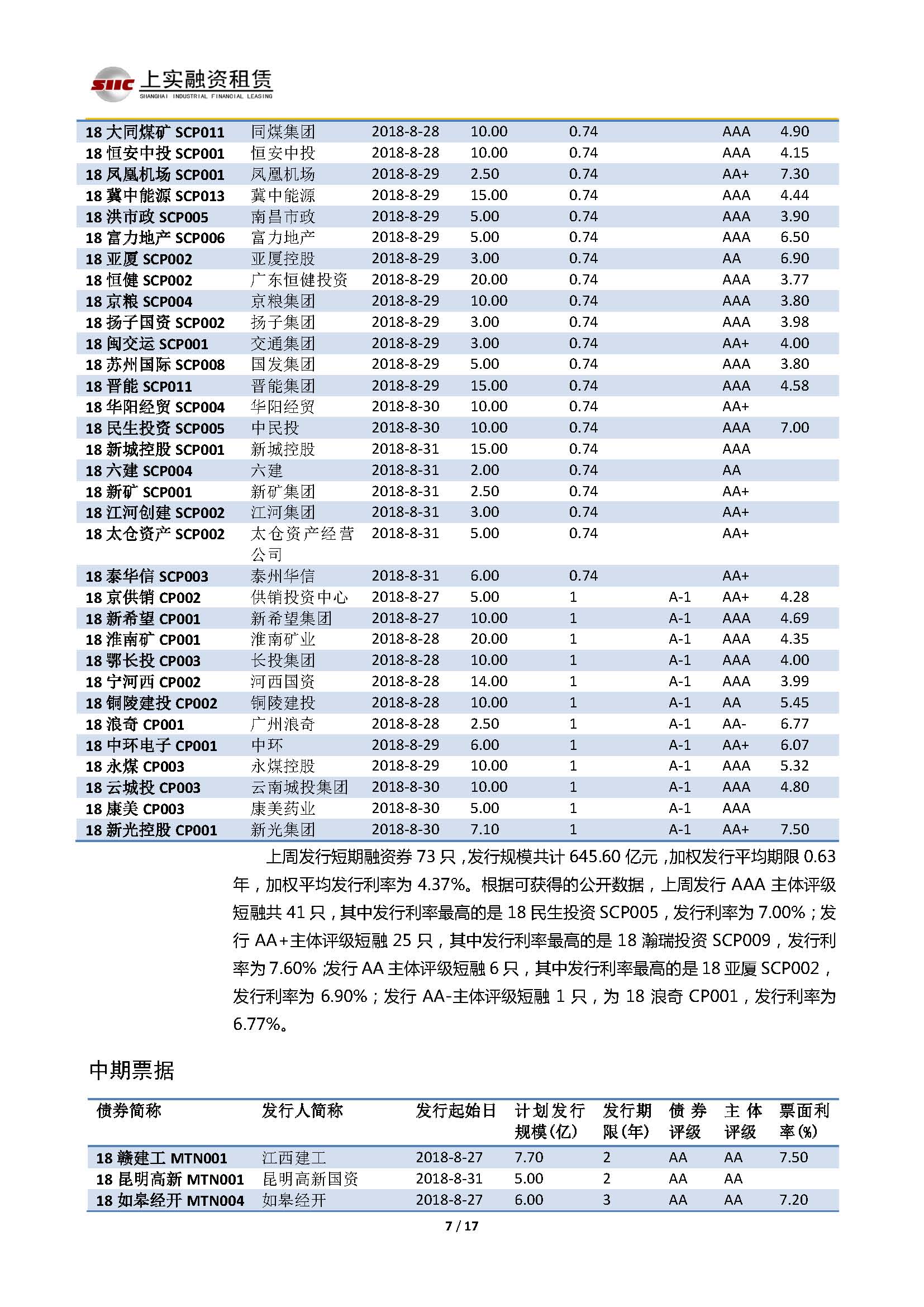 | 當(dāng)前位置:新聞中心 > 上實(shí)-融資工具周報(bào)20180824-20180831 | |||||