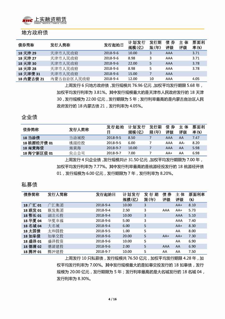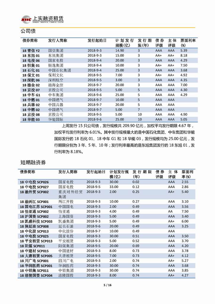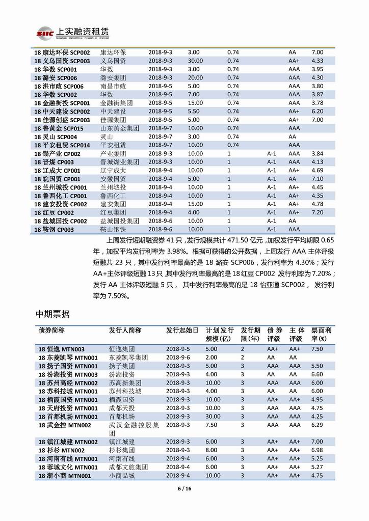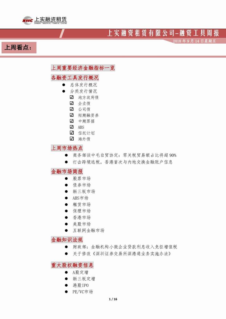 | 當(dāng)前位置:新聞中心 > 上實(shí)-融資工具周報(bào)20180831-20180907 | |||||