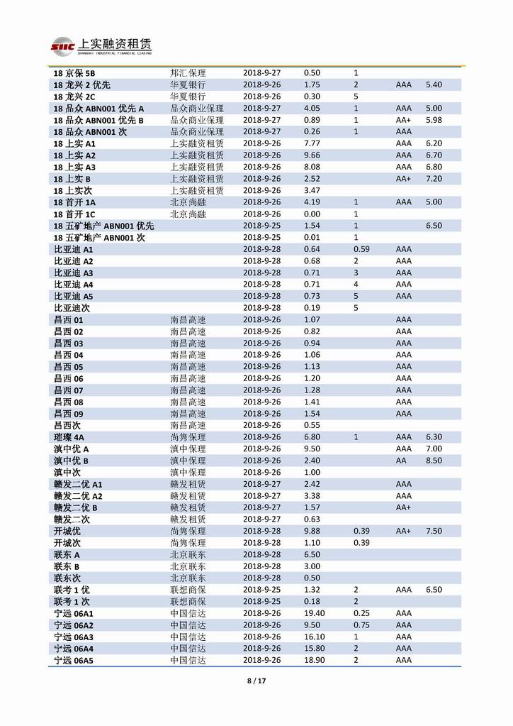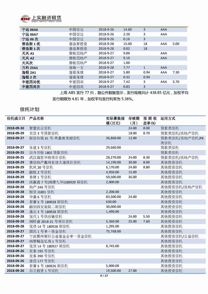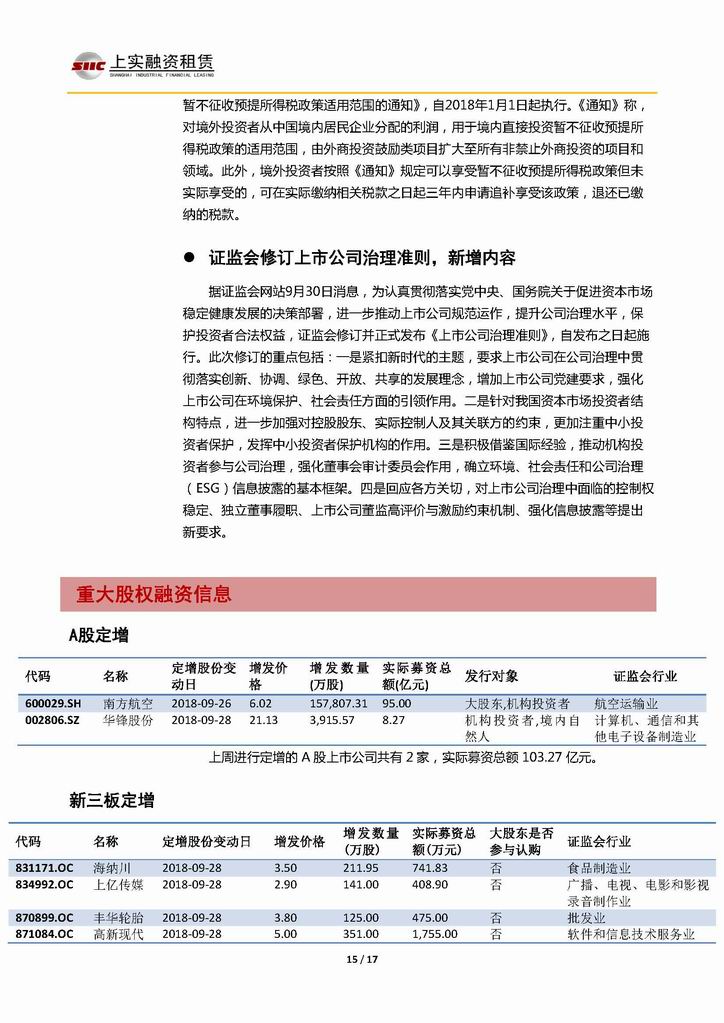 | 當(dāng)前位置:新聞中心 > 上實(shí)-融資工具周報(bào)20180921-20181005 | |||||