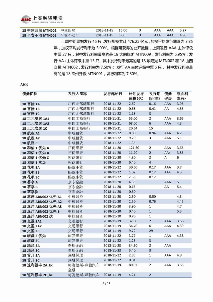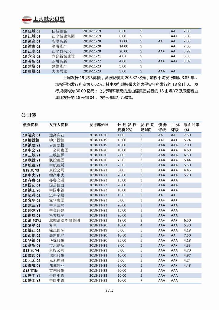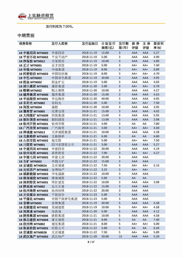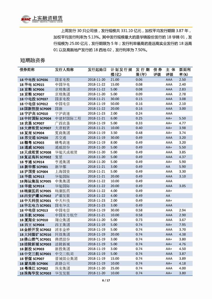 | 當(dāng)前位置:新聞中心 > 上實(shí)-融資工具周報(bào)20181116-20181123 | |||||