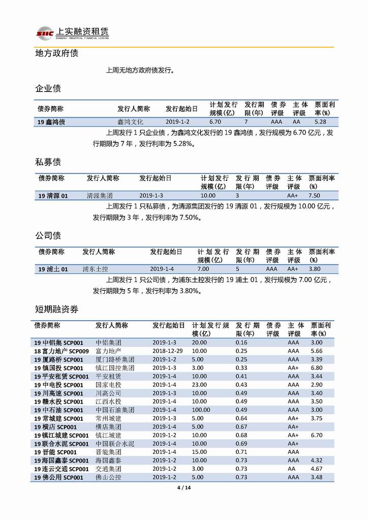 | 當(dāng)前位置:新聞中心 > 上實-融資工具周報20181228-20180104 | |||||