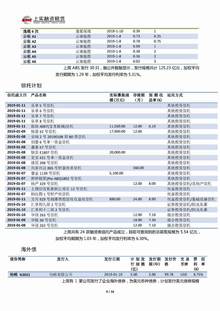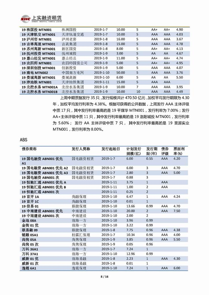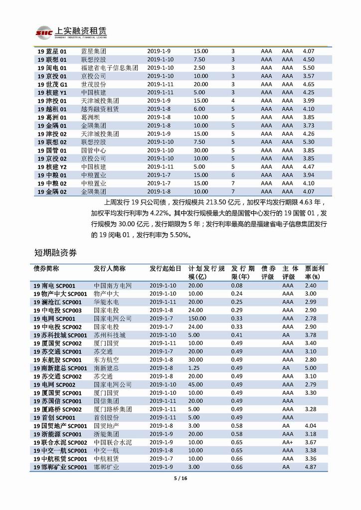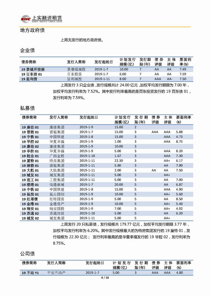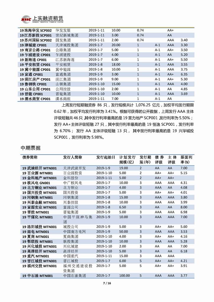 | 當(dāng)前位置:新聞中心 > 上實-融資工具周報20190104-20190111 | |||||