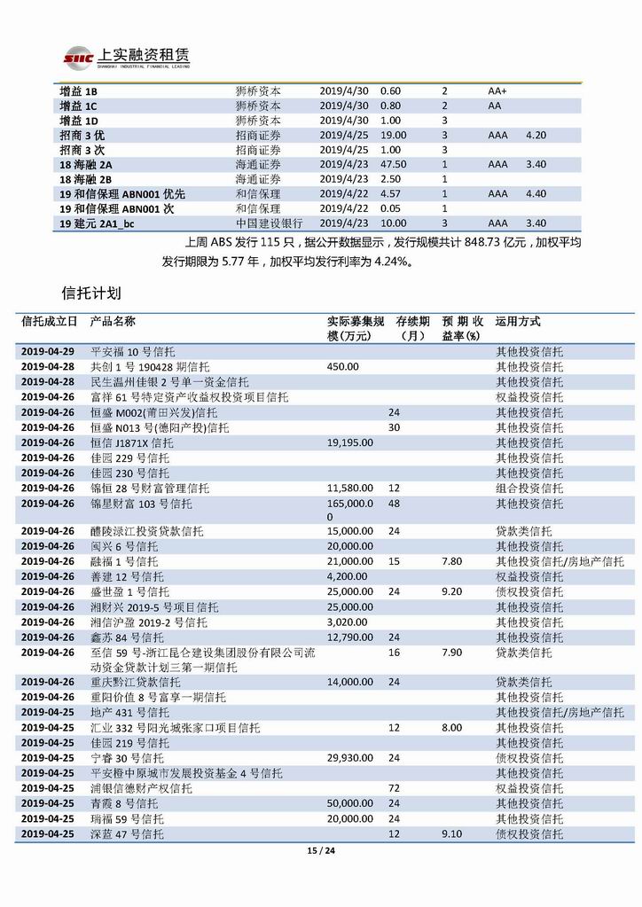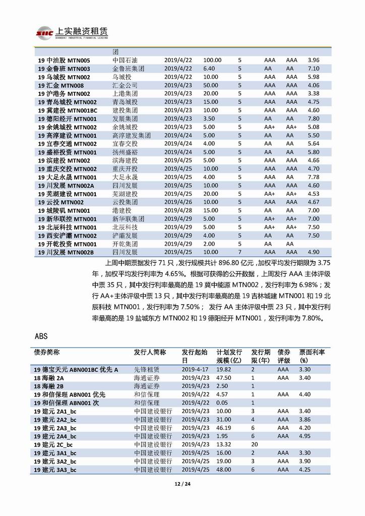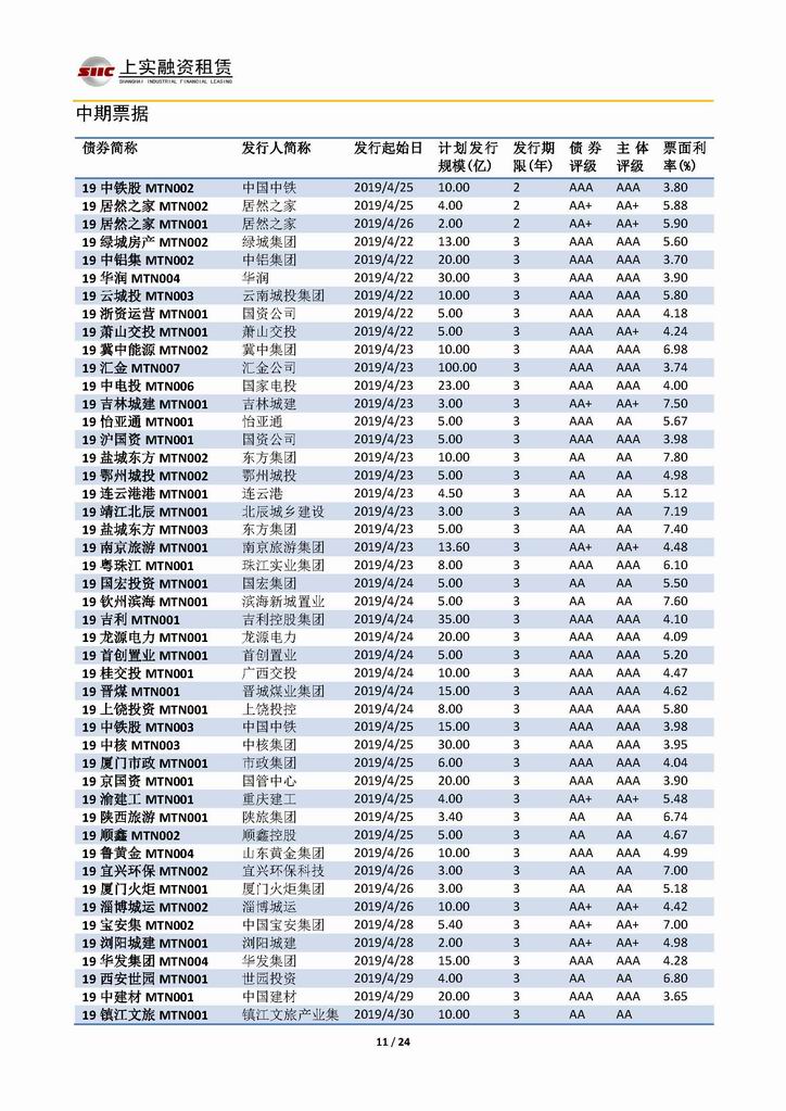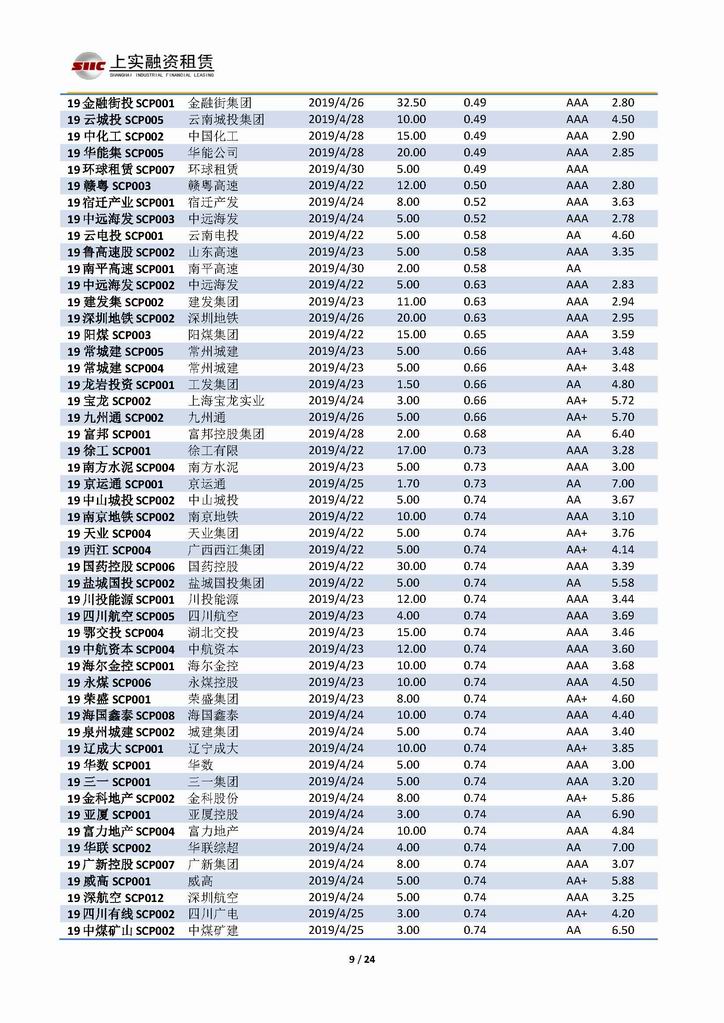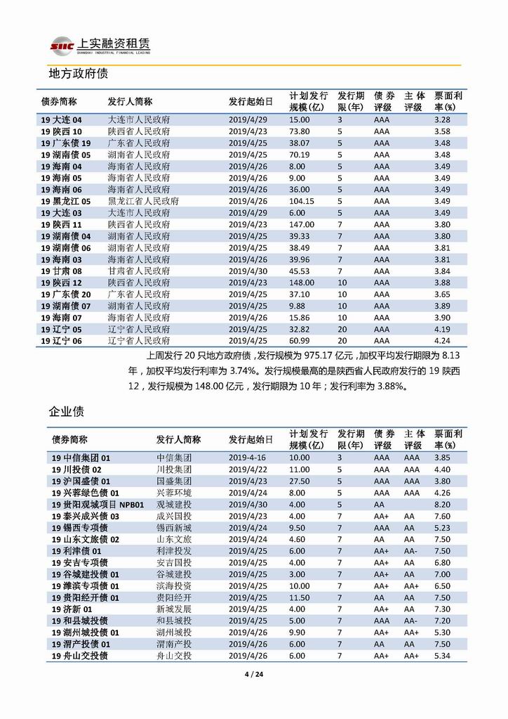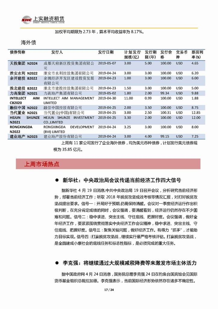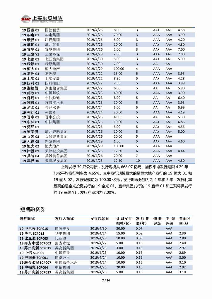 | 當(dāng)前位置:新聞中心 > 上實(shí)-融資工具周報(bào)20190419-20190503 | |||||