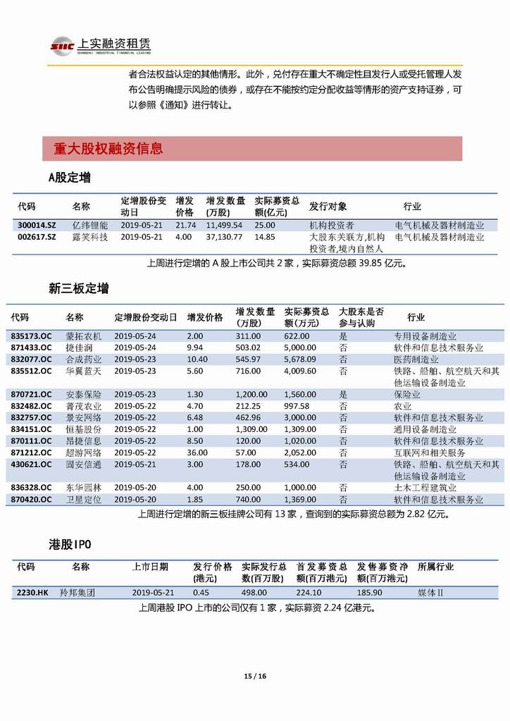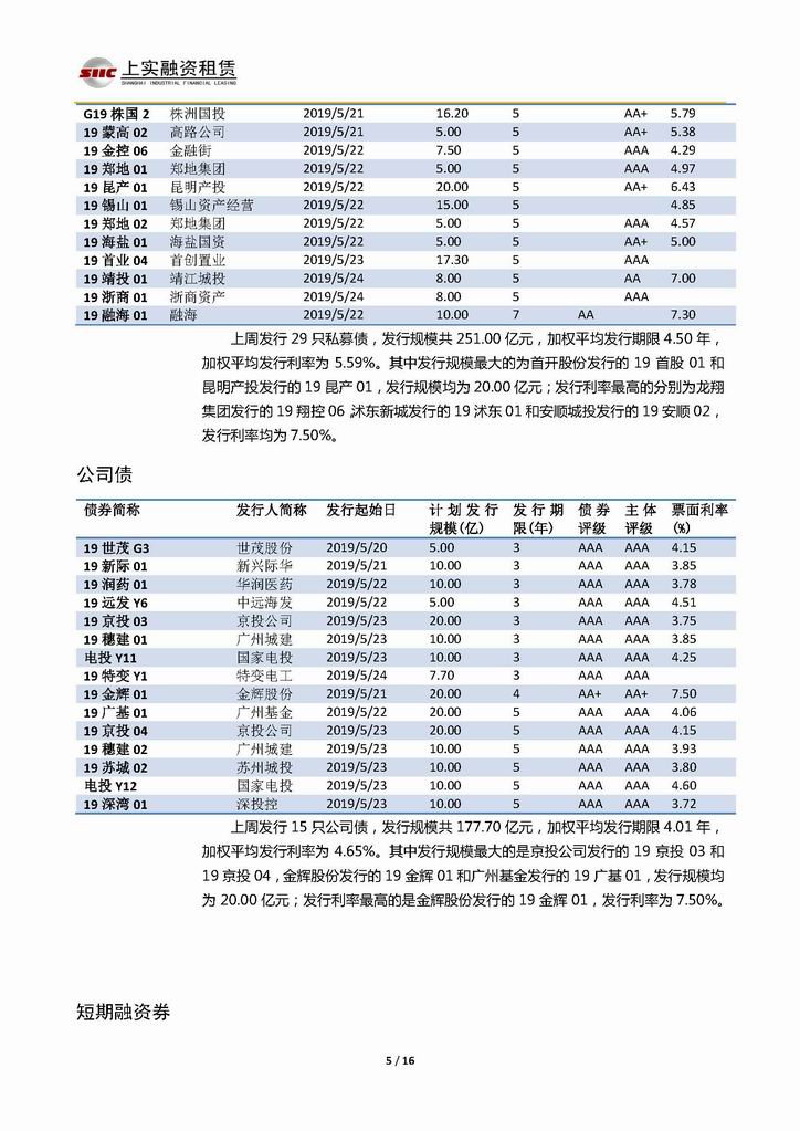 | 當前位置:新聞中心 > 上實-融資工具周報20190517-20190524 | |||||