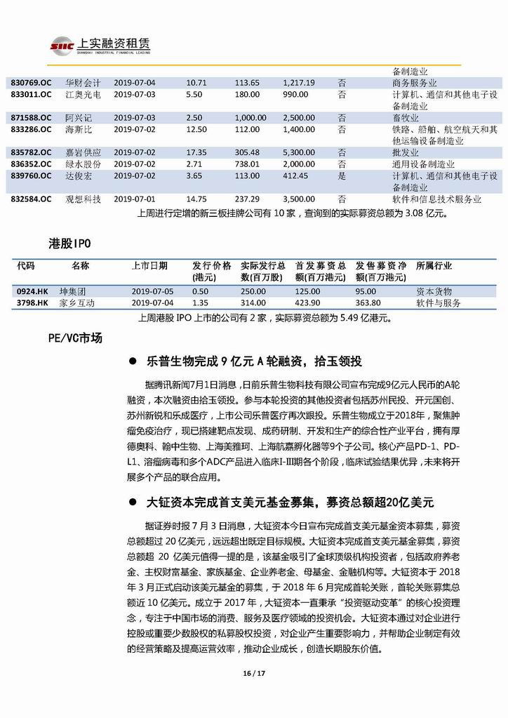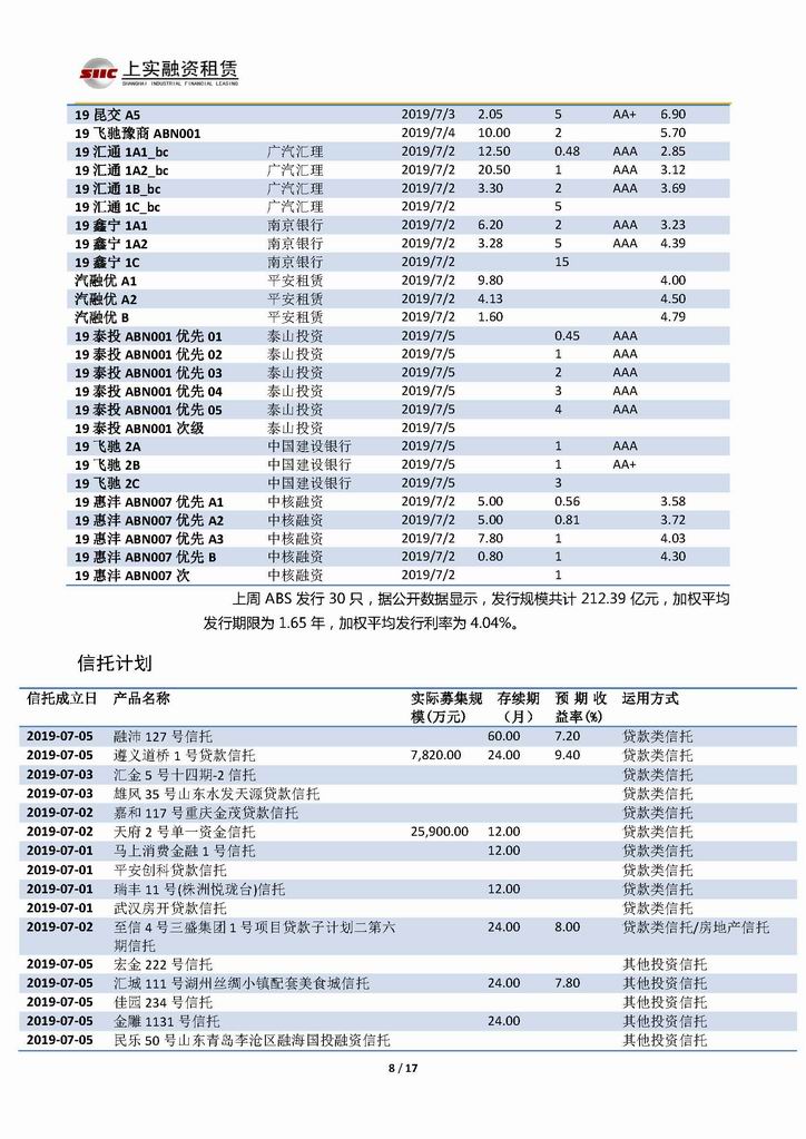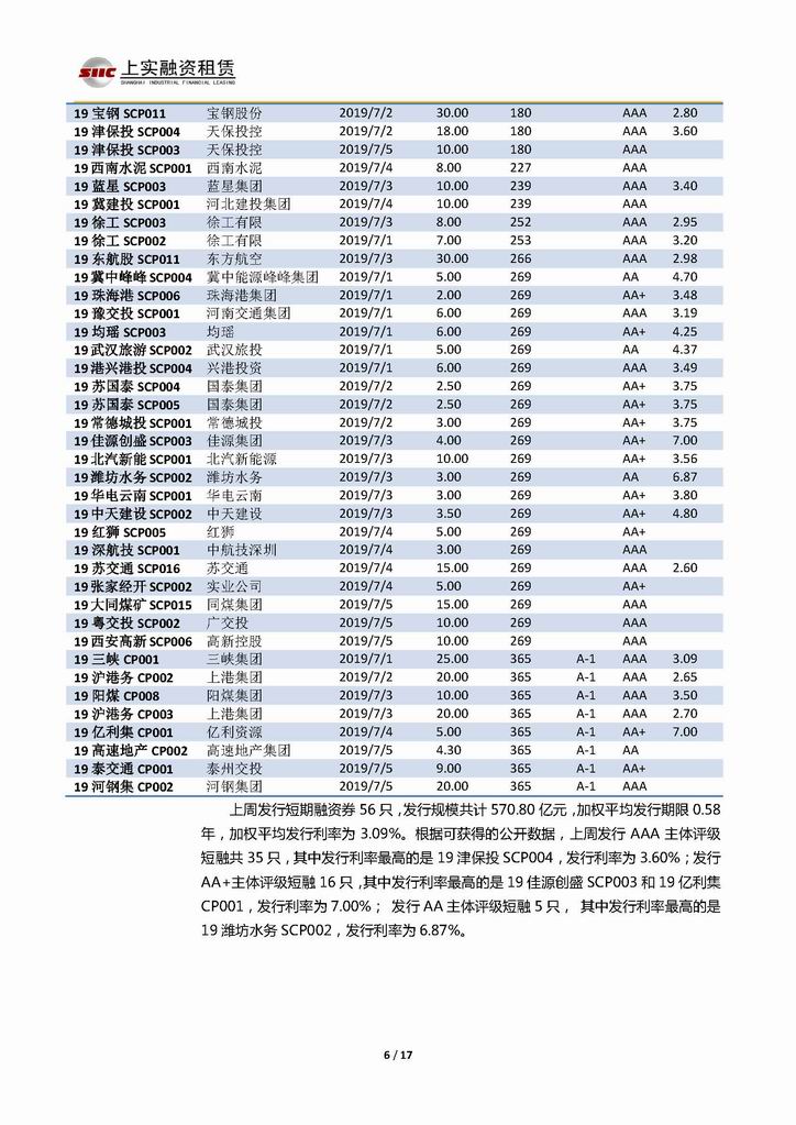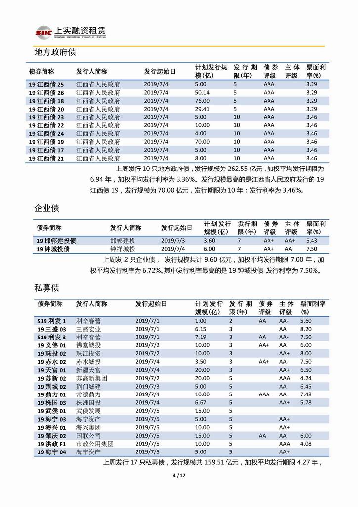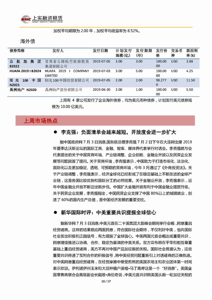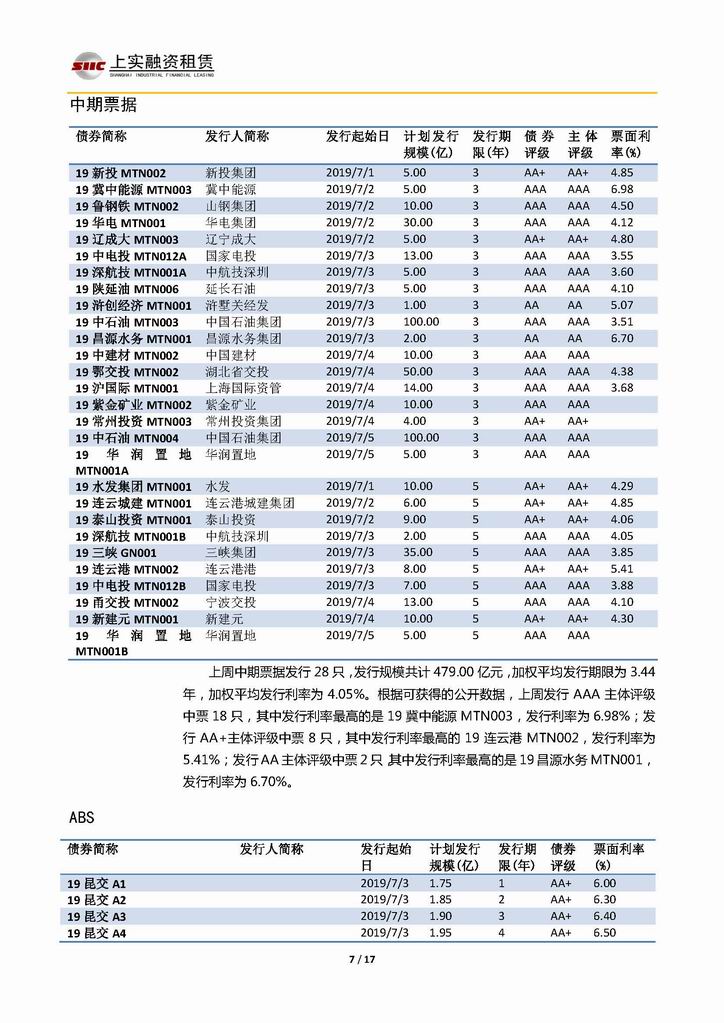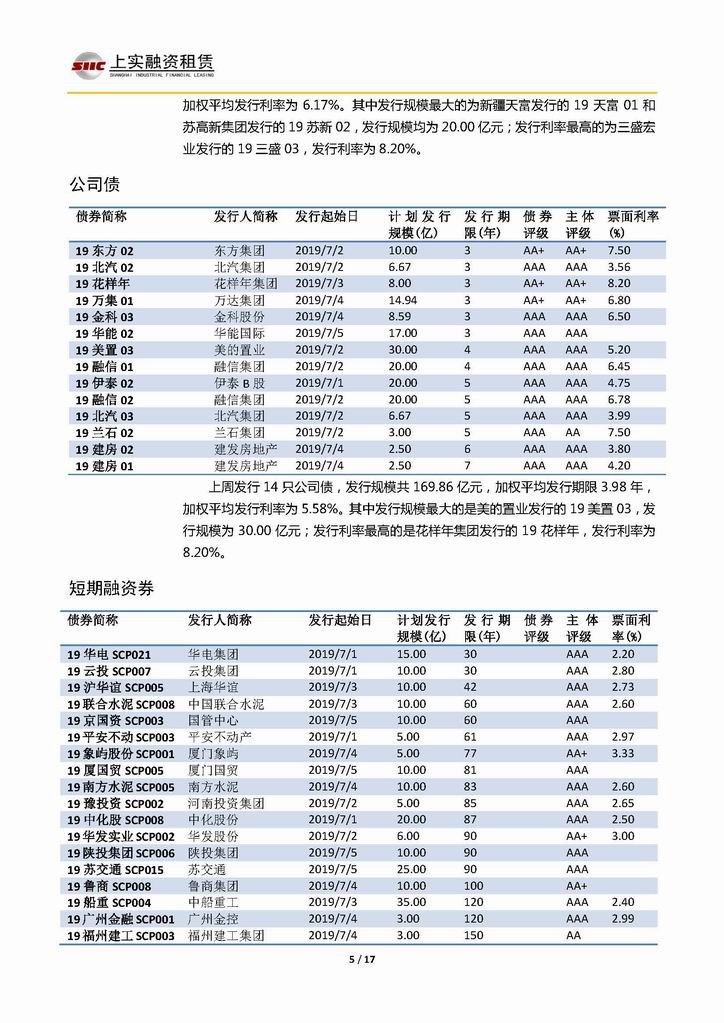 | 當前位置:新聞中心 > 上實-融資工具周報2019.7.1-2019.7.5 | |||||