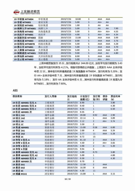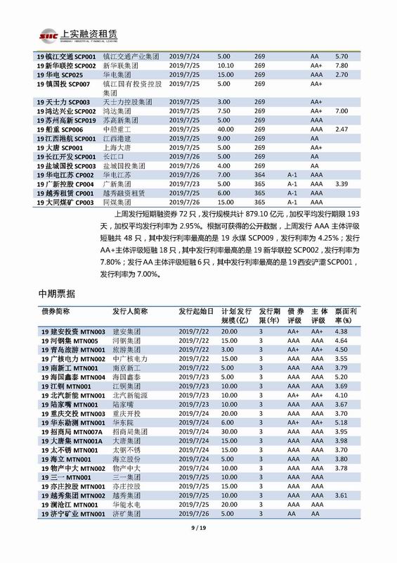 | 當(dāng)前位置:新聞中心 > 上實(shí)-融資工具周報(bào)2019.7.22-2019.7.26 | |||||