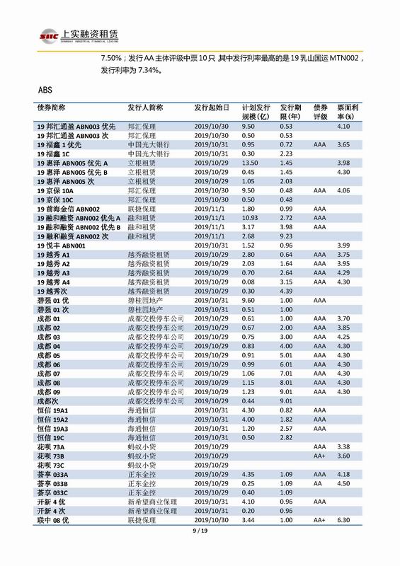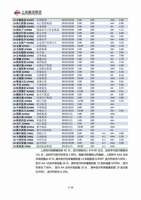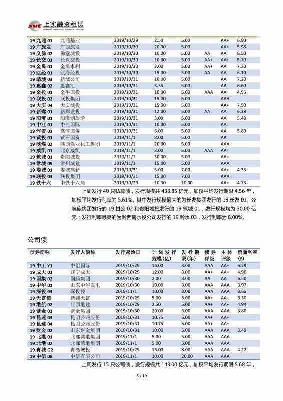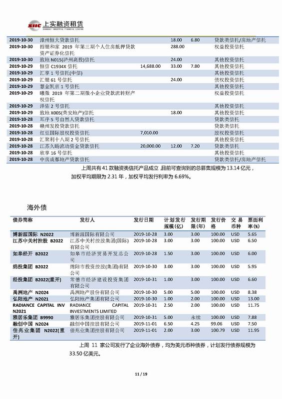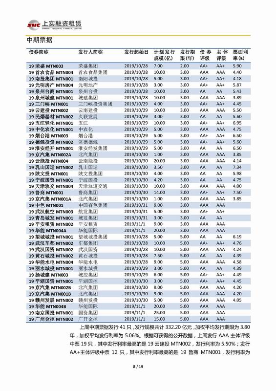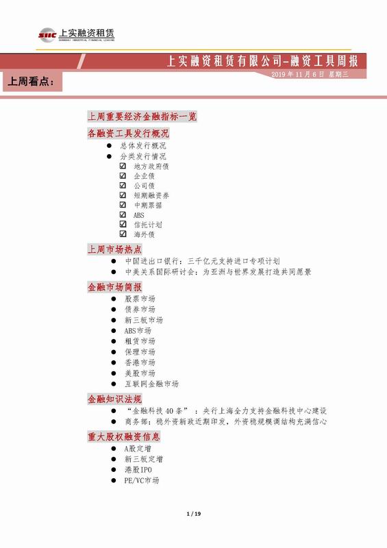 | 當(dāng)前位置:新聞中心 > 上實(shí)-融資工具周報(bào)2019.10.28-2019.11.1 | |||||