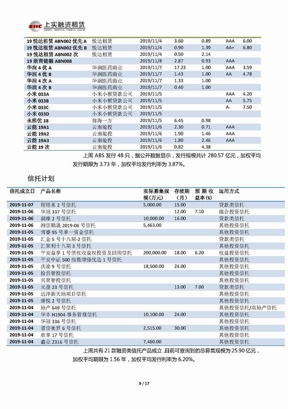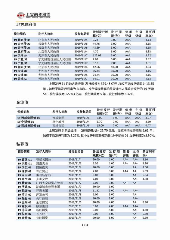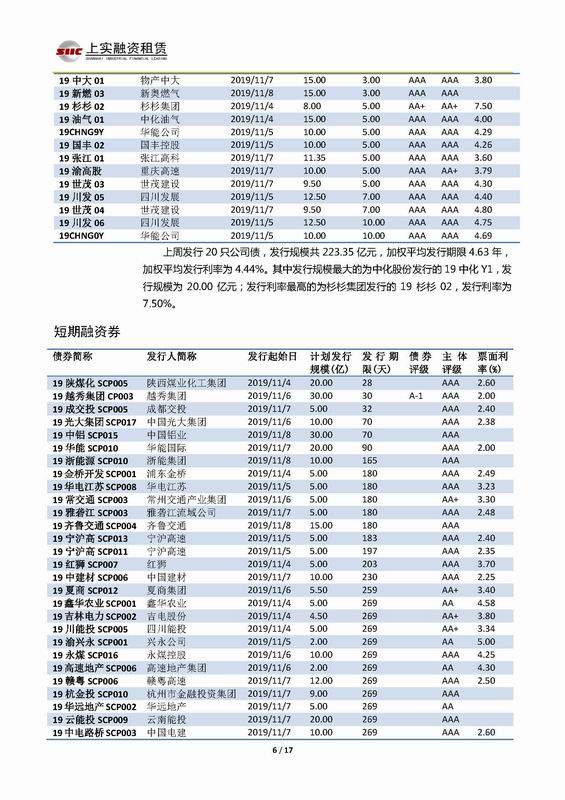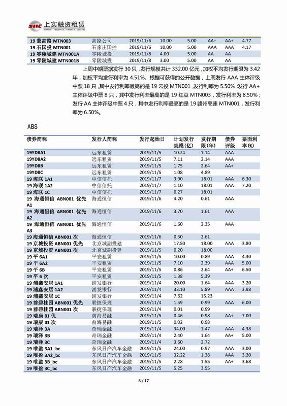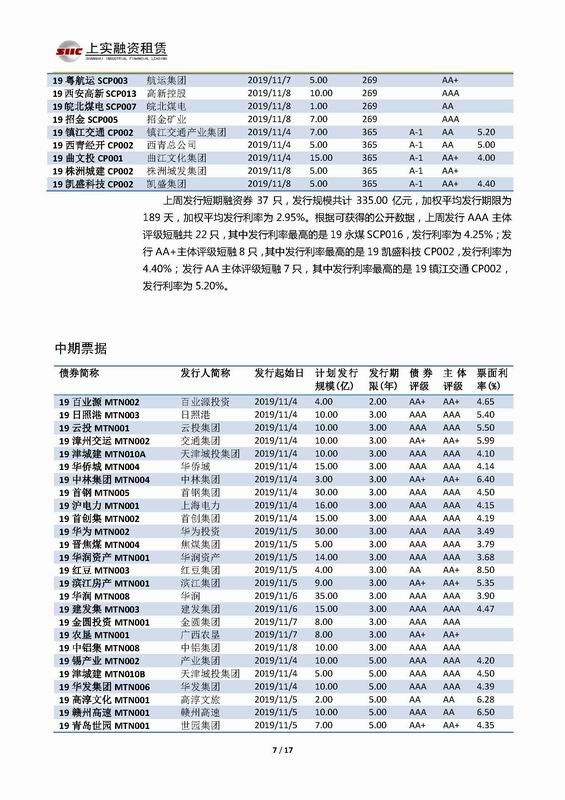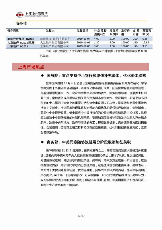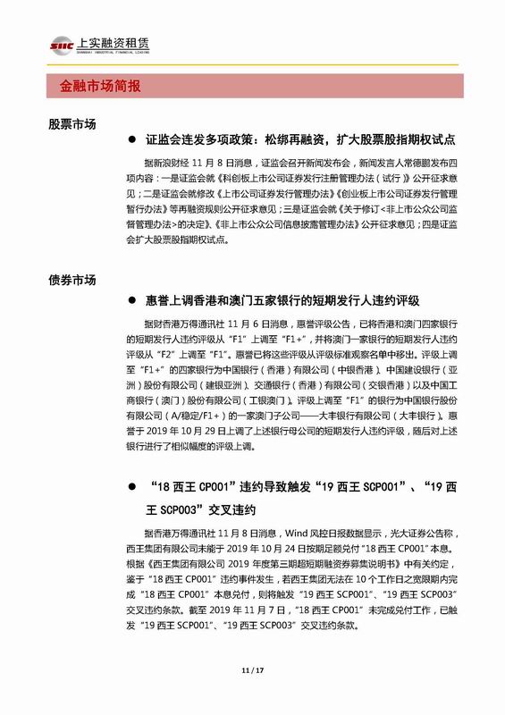| 當(dāng)前位置:新聞中心 > 上實(shí)-融資工具周報(bào)2019.11.4-2019.11.8 | |||||