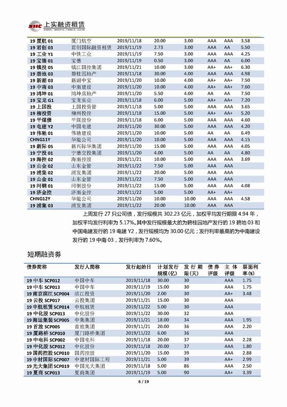 | 當(dāng)前位置:新聞中心 > 上實-融資工具周報2019.11.18-2019.11.22 | |||||
