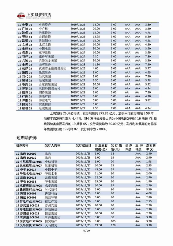 | 當(dāng)前位置:新聞中心 > 上實(shí)-融資工具周報(bào)2019.11.25-2019.11.29 | |||||