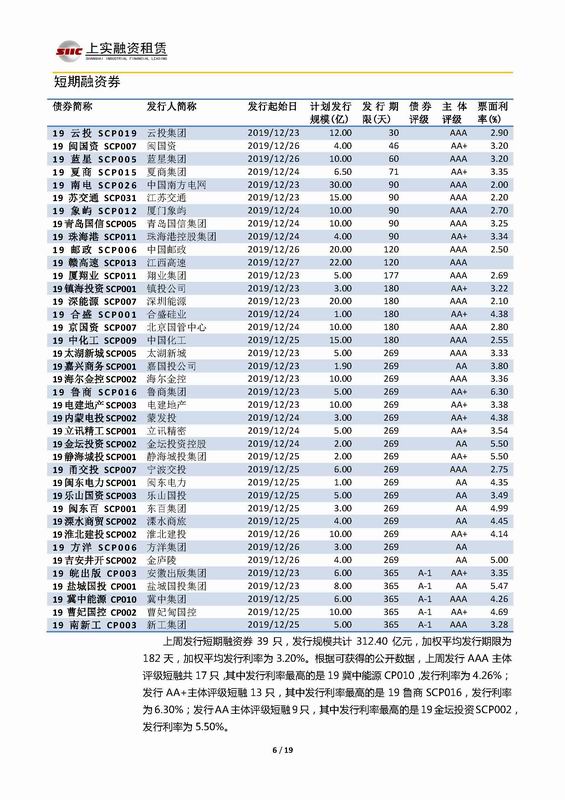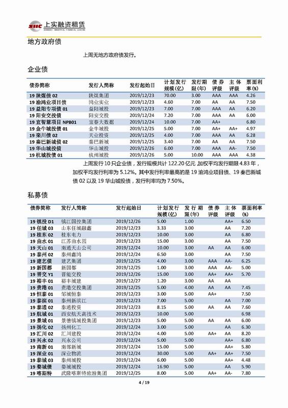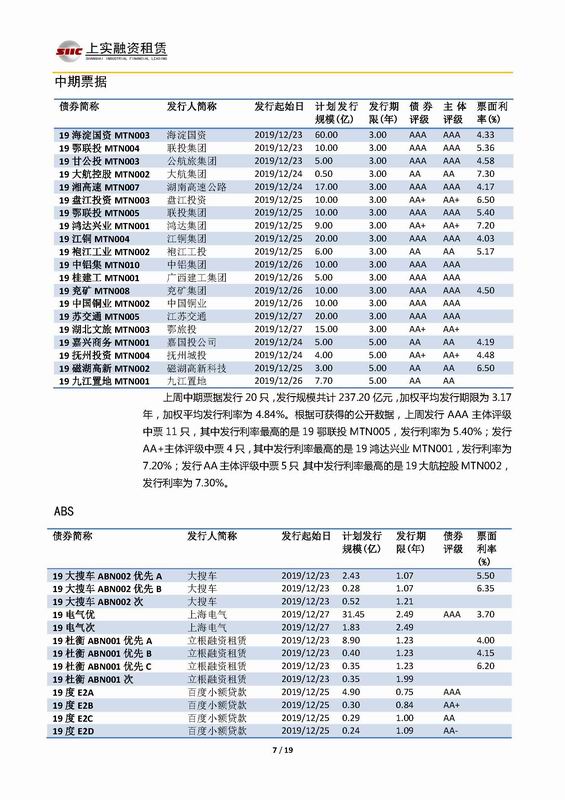 | 當(dāng)前位置:新聞中心 > 上實(shí)-融資工具周報(bào)2019.12.23-2019.12.27 | |||||