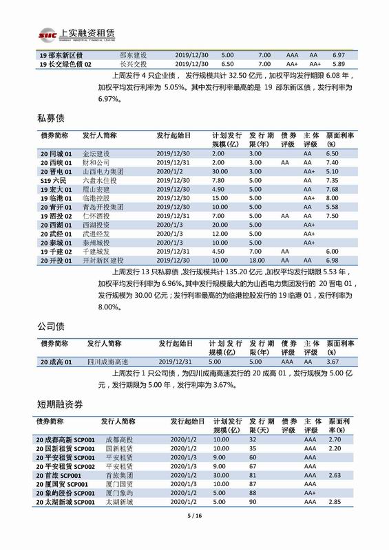 | 當(dāng)前位置:新聞中心 > 上實(shí)-融資工具周報(bào)2019.12.30-2020.1.3 | |||||