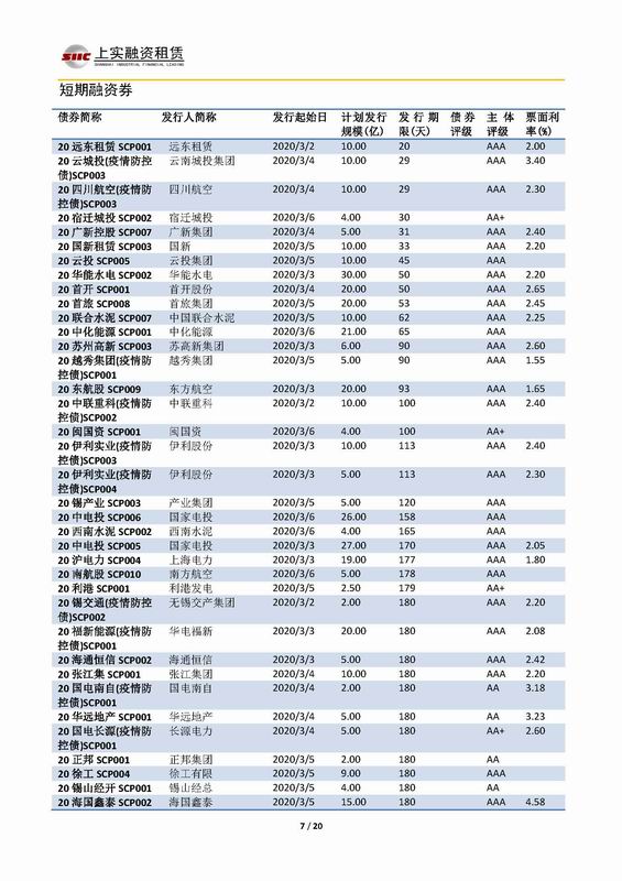 | 當(dāng)前位置:新聞中心 > 上實(shí)-融資工具周報(bào)2020.3.2-2020.3.6 | |||||