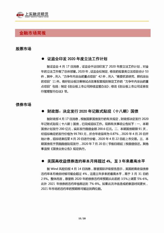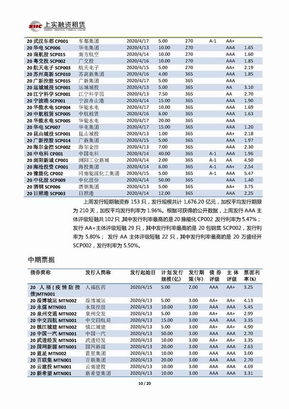 | 當(dāng)前位置:新聞中心 > 上實-融資工具周報2020.4.13-2020.4.17 | |||||