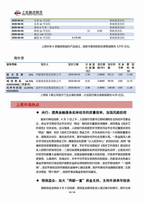 | 當(dāng)前位置:新聞中心 > 上實(shí)-融資工具周報(bào)2020.6.1-2020.6.5 | |||||