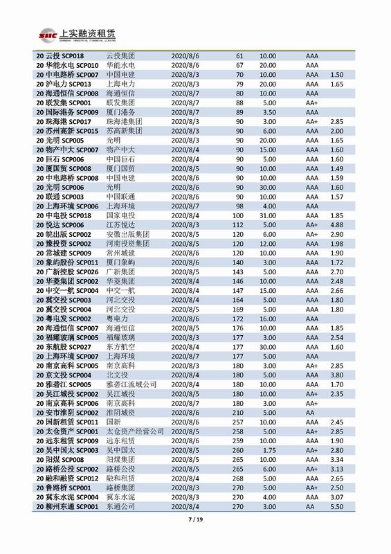| 當(dāng)前位置:新聞中心 > 上實-融資工具周報2020.8.3-2020.8.7 | |||||