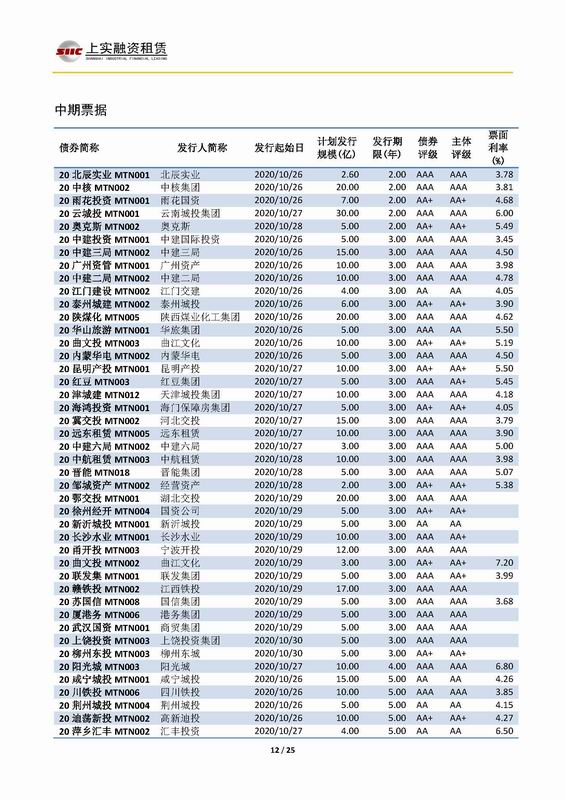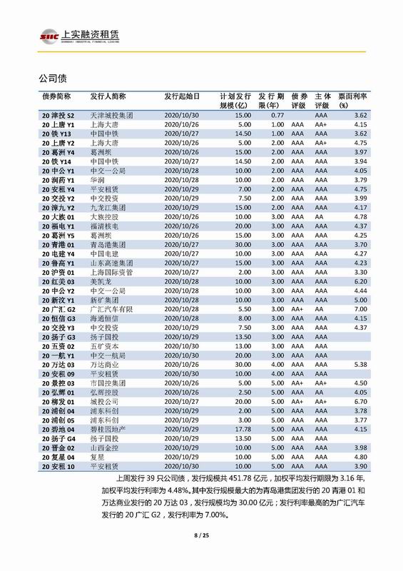 | 當(dāng)前位置:新聞中心 > 上實(shí)-融資工具周報(bào)2020.10.26-2020.10.30 | |||||