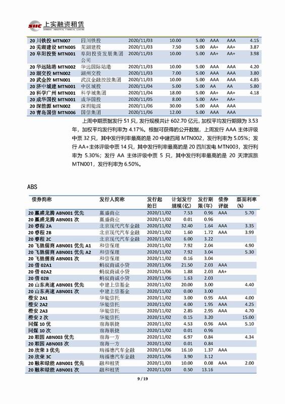 | 當前位置:新聞中心 > 上實-融資工具周報2020.11.2-2020.11.6 | |||||