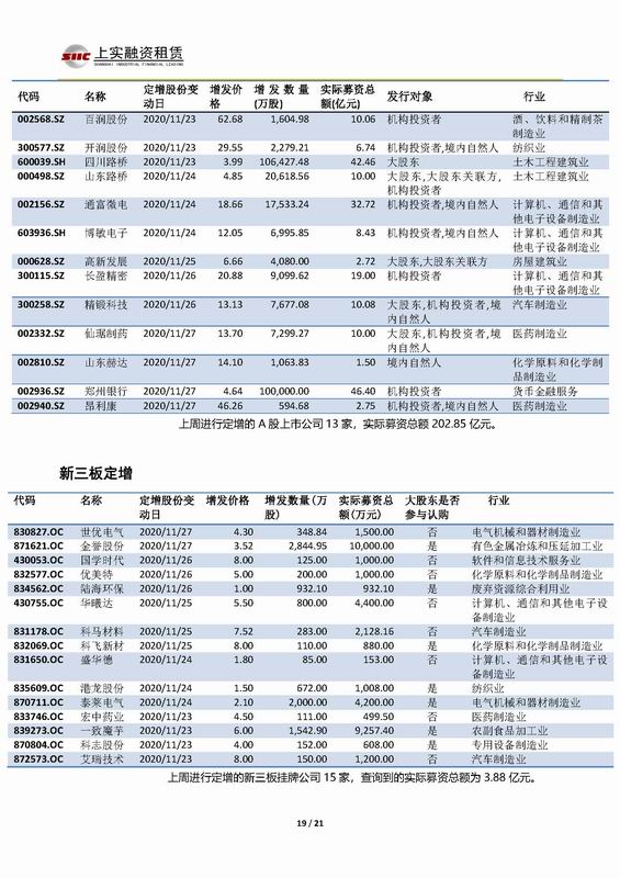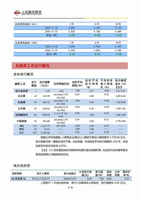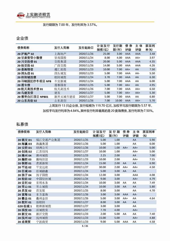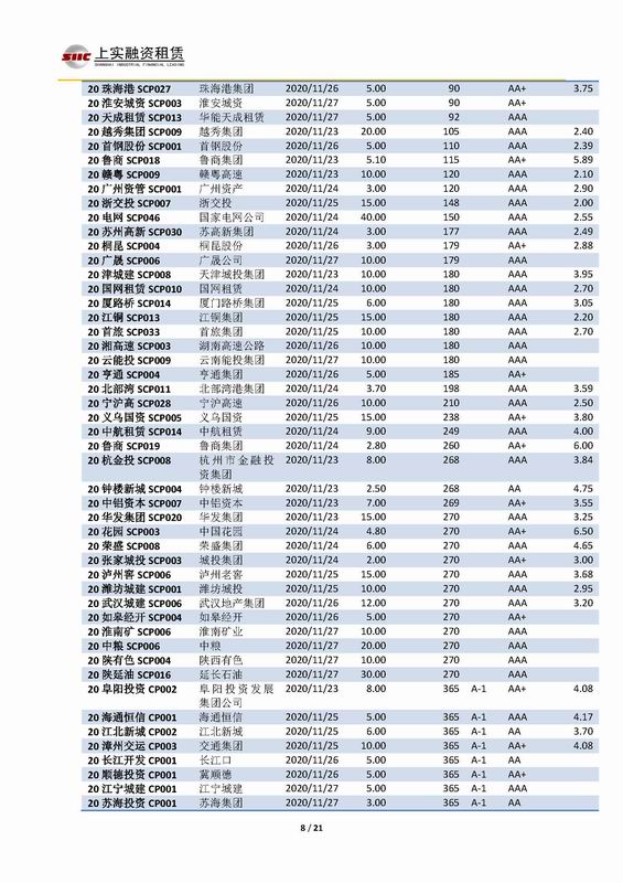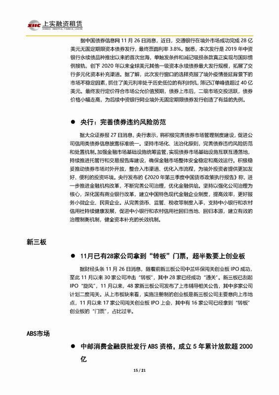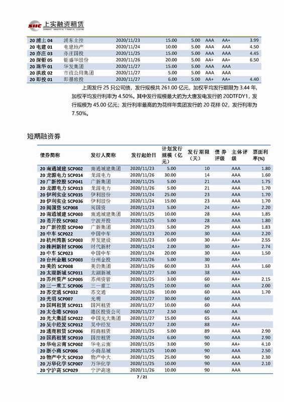 | 當(dāng)前位置:新聞中心 > 上實(shí)-融資工具周報(bào)2020.11.23-2020.11.27 | |||||