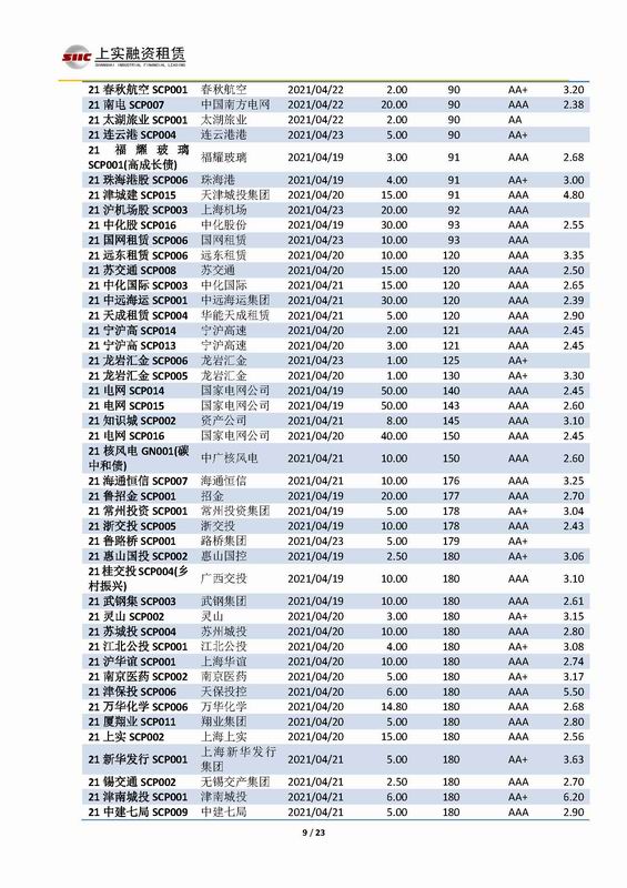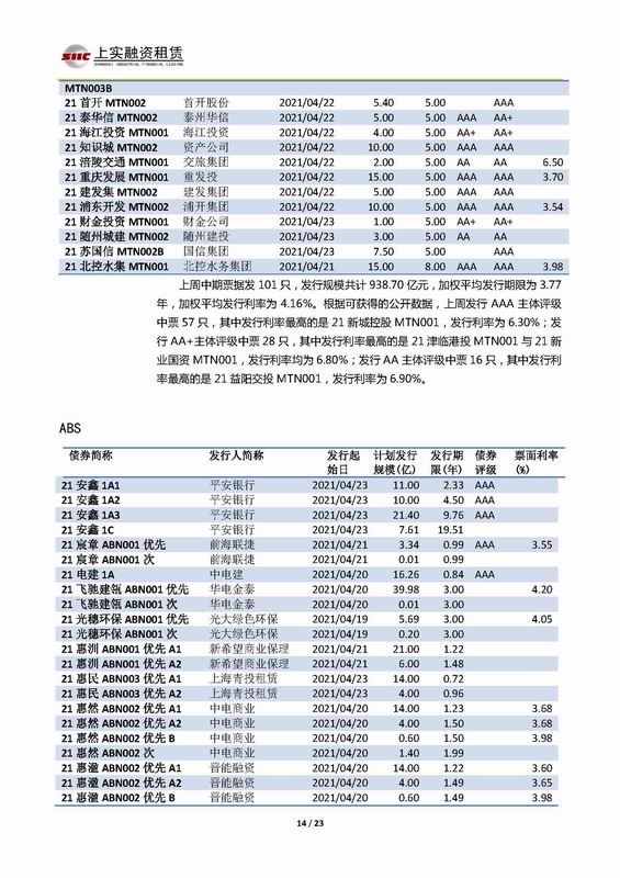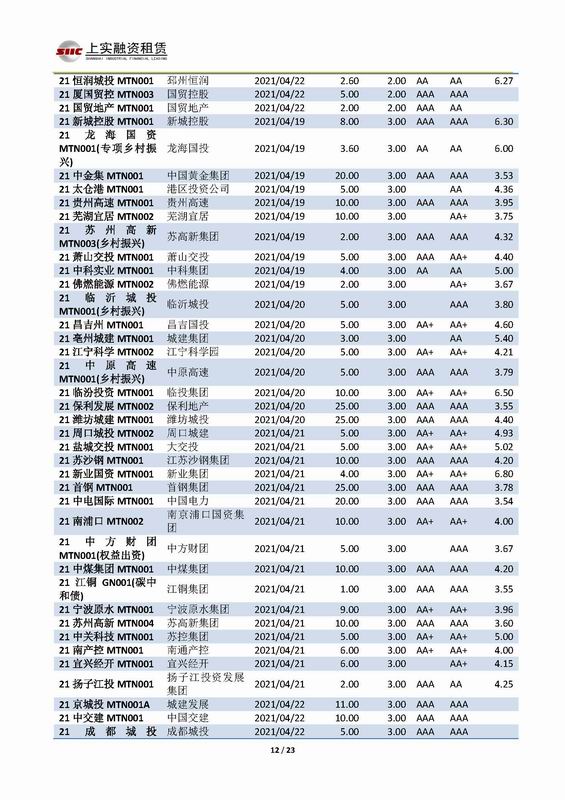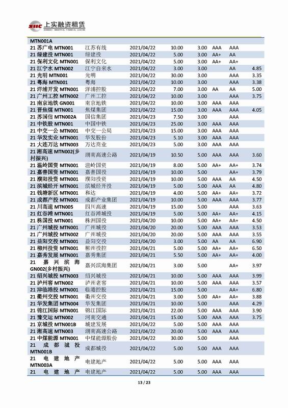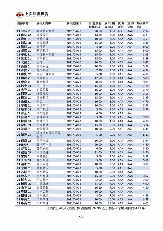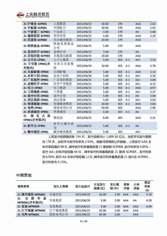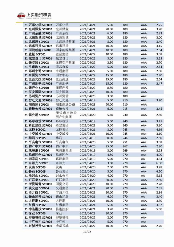 | 當(dāng)前位置:新聞中心 > 上實(shí)-融資工具周報(bào)2021.4.19-2021.4.23 | |||||
