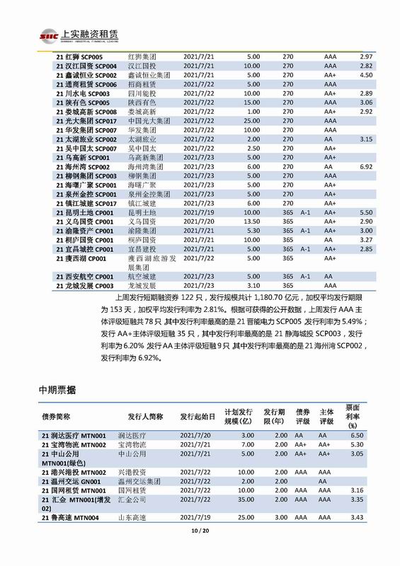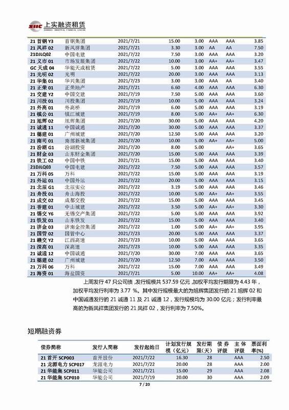 當(dāng)前位置:新聞中心 > 上實-融資工具周報2021.7.19-2021.7.23