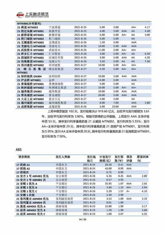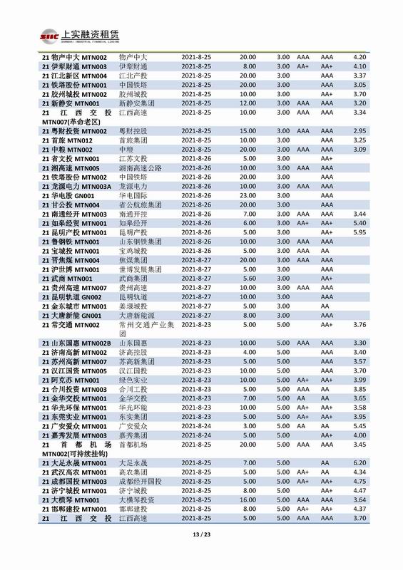 | 當(dāng)前位置:新聞中心 > 上實(shí)-融資工具周報2021.8.23-2021.8.27 | |||||