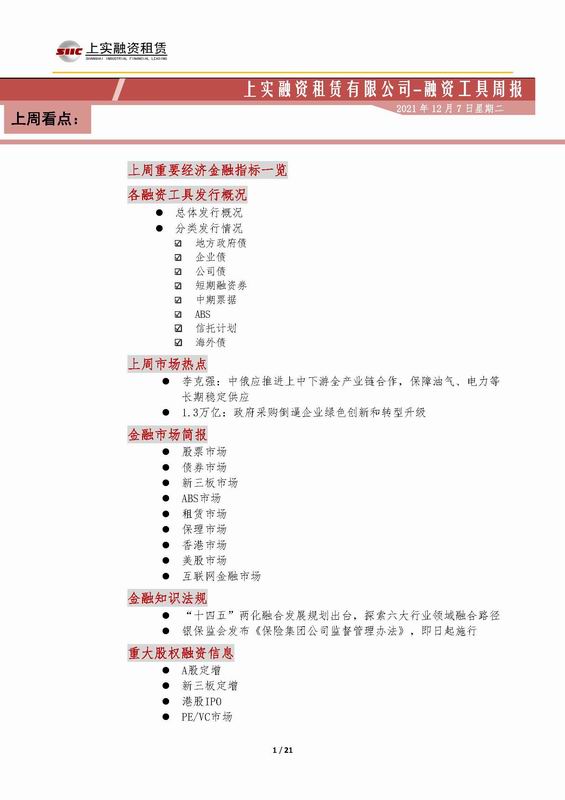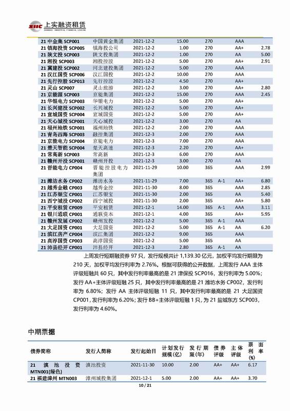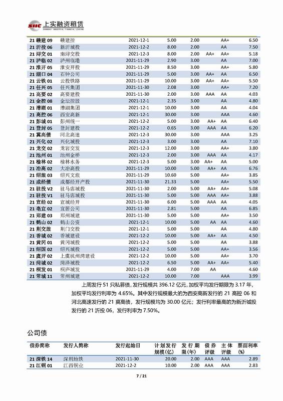 | 當(dāng)前位置:新聞中心 > 上實-融資工具周報2021.11.29-2021.12.3 | |||||