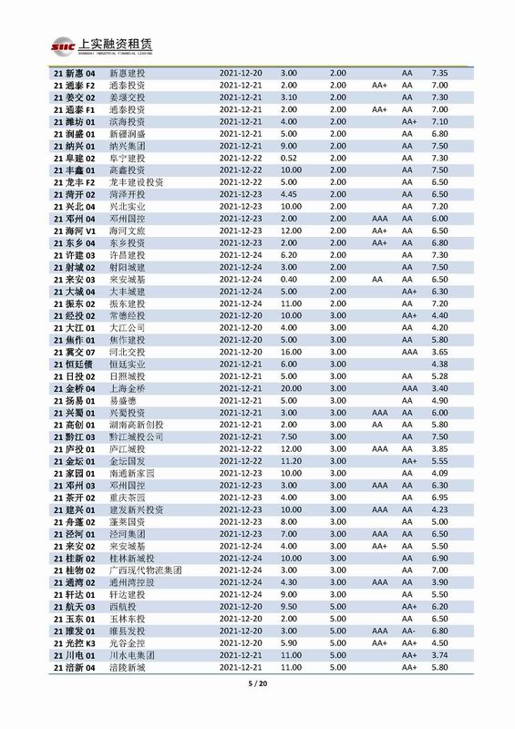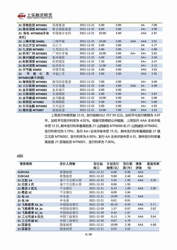| 當(dāng)前位置:新聞中心 > 上實(shí)-融資工具周報(bào)2021.12.20-2021.12.24 | |||||