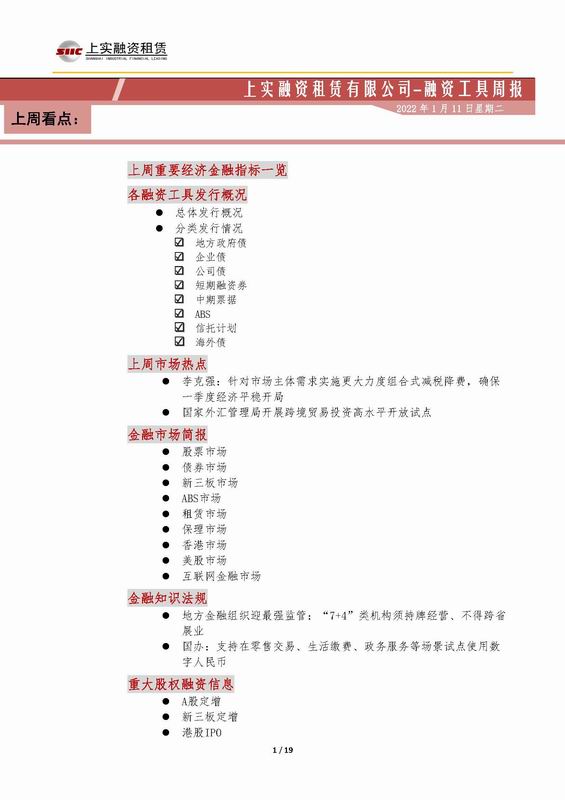 | 當(dāng)前位置:新聞中心 > 上實(shí)-融資工具周報(bào)2021.1.3-2021.1.7 | |||||