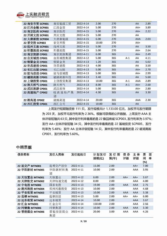 | 當前位置:新聞中心 > 上實-融資工具周報2021.4.11-2021.4.15 | |||||