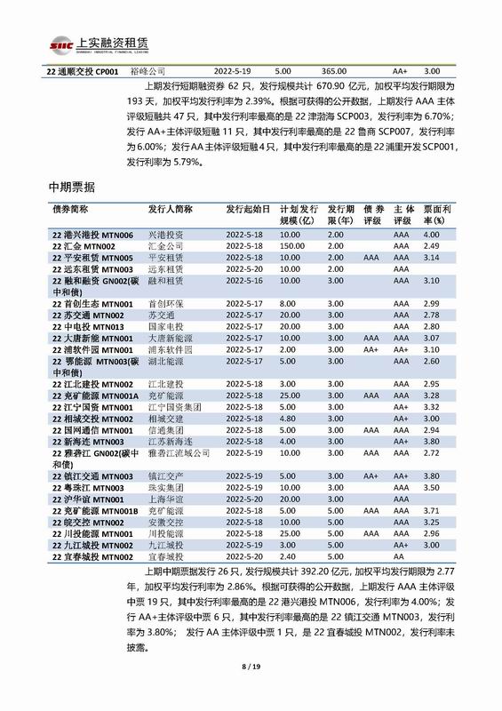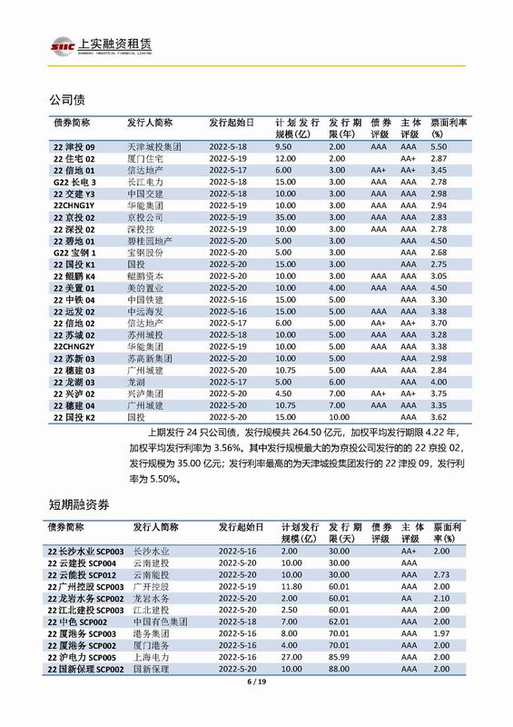 | 當(dāng)前位置:新聞中心 > 上實(shí)-融資工具周報(bào)2022.5.16-2022.5.20 | |||||