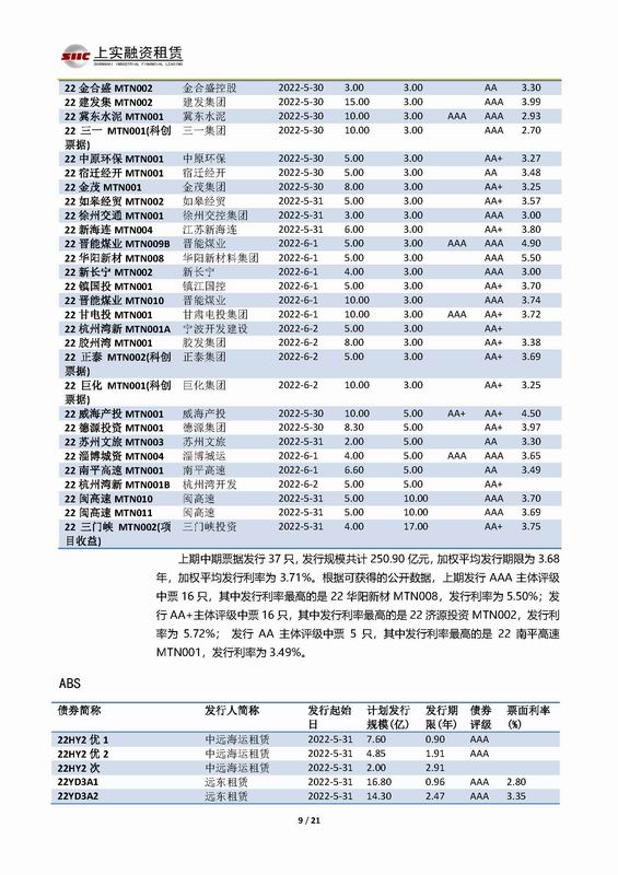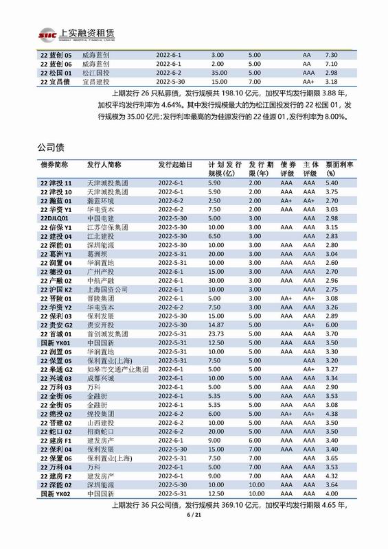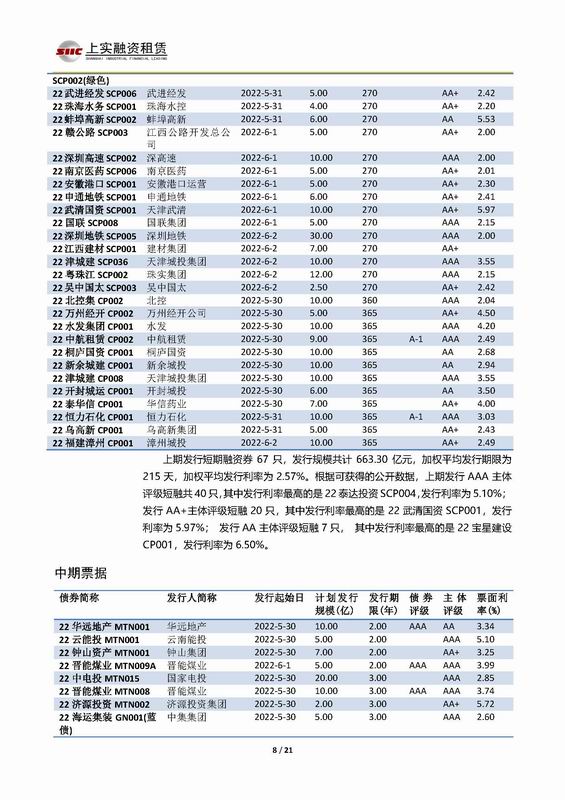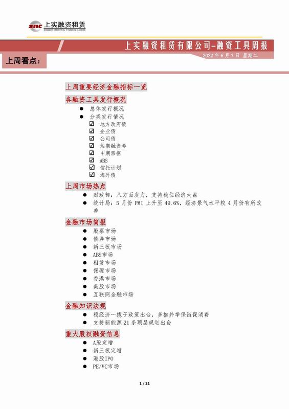 | 當(dāng)前位置:新聞中心 > 上實(shí)-融資工具周報(bào)2022.5.30-2022.6.3 | |||||