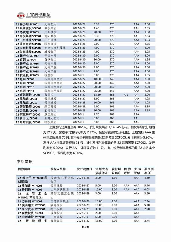 | 當(dāng)前位置:新聞中心 > 上實(shí)-融資工具周報(bào)2022.6.27-2022.7.1 | |||||