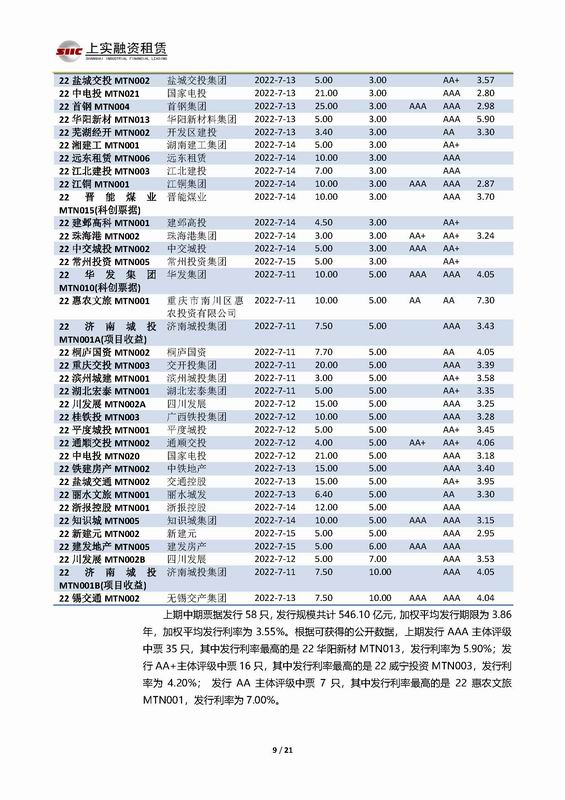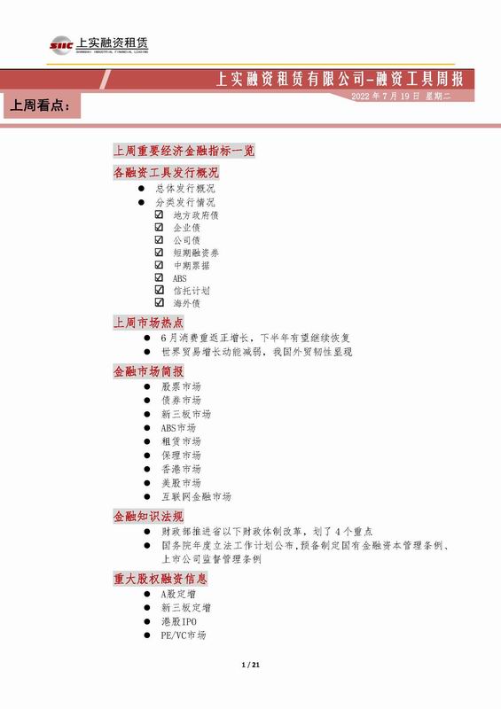 | 當(dāng)前位置:新聞中心 > 上實(shí)-融資工具周報(bào)2022.7.11-2022.7.15 | |||||