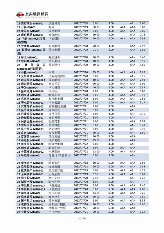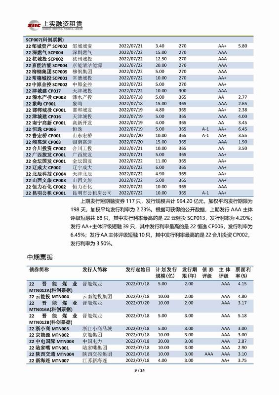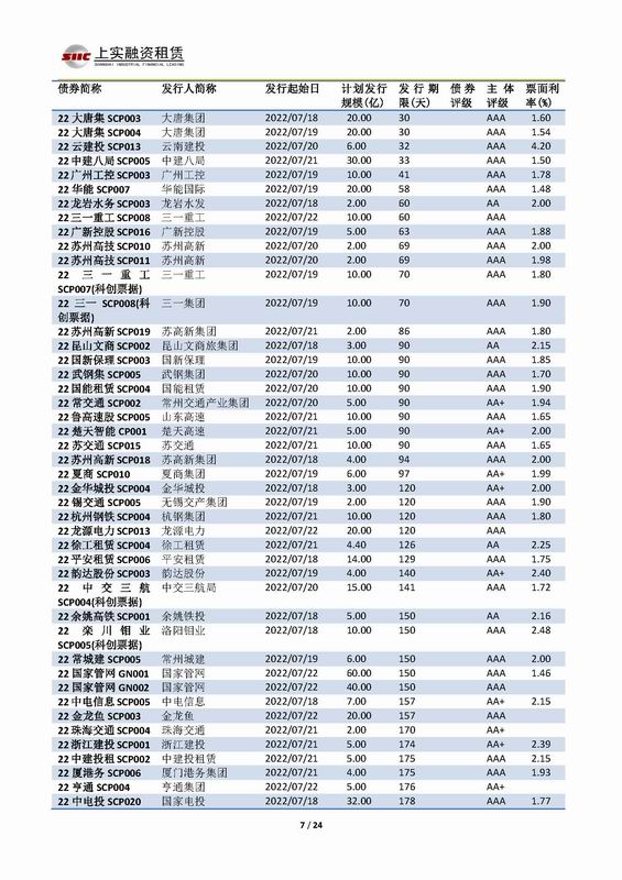 | 當(dāng)前位置:新聞中心 > 上實-融資工具周報2022.7.18-2022.7.22 | |||||