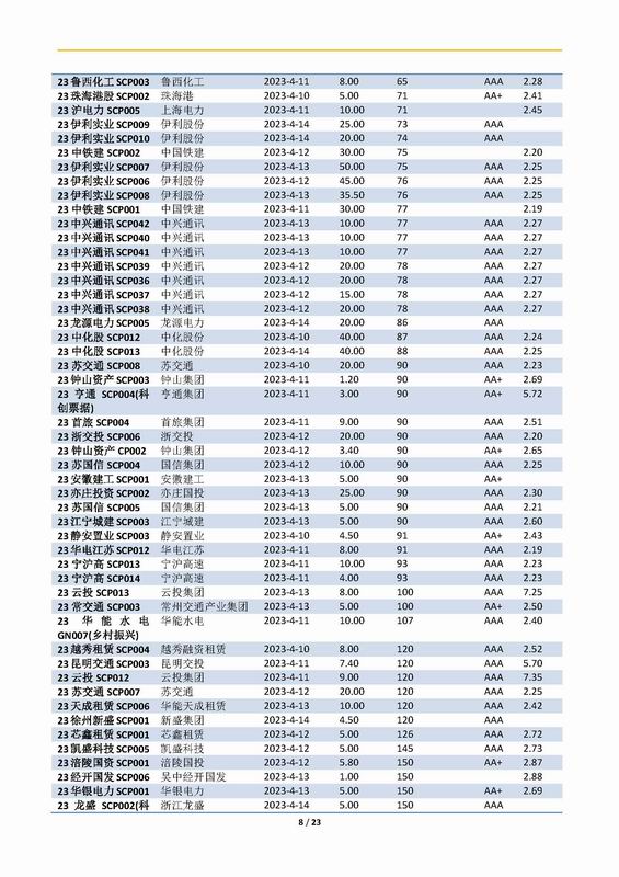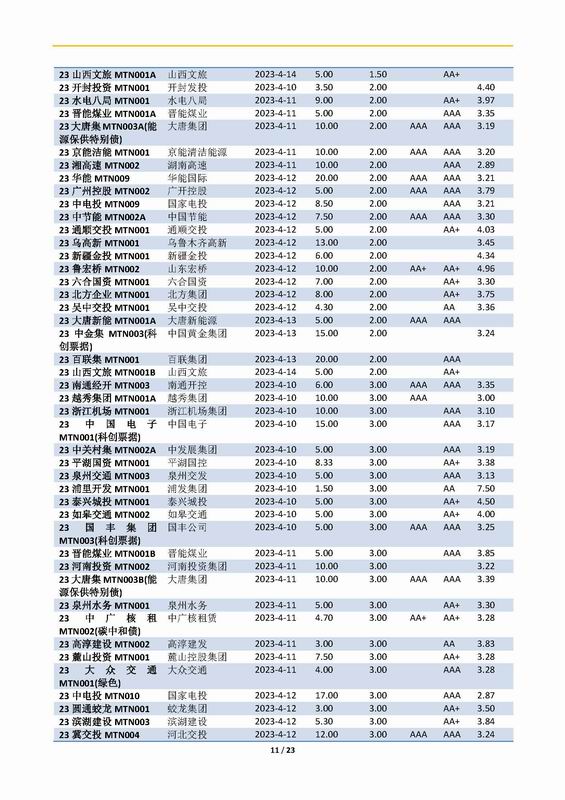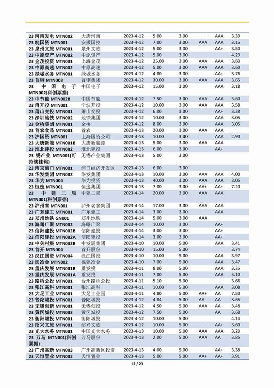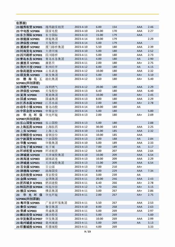 | 當(dāng)前位置:新聞中心 > 上實(shí)-融資工具周報(bào)2023.4.10-2023.4.14 | |||||