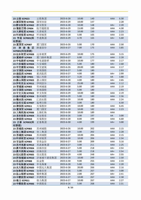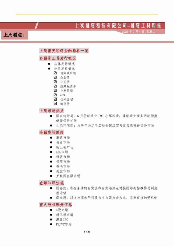 | 當(dāng)前位置:新聞中心 > 上實(shí)-融資工具周報(bào)2023.6.26-2023.6.30 | |||||
