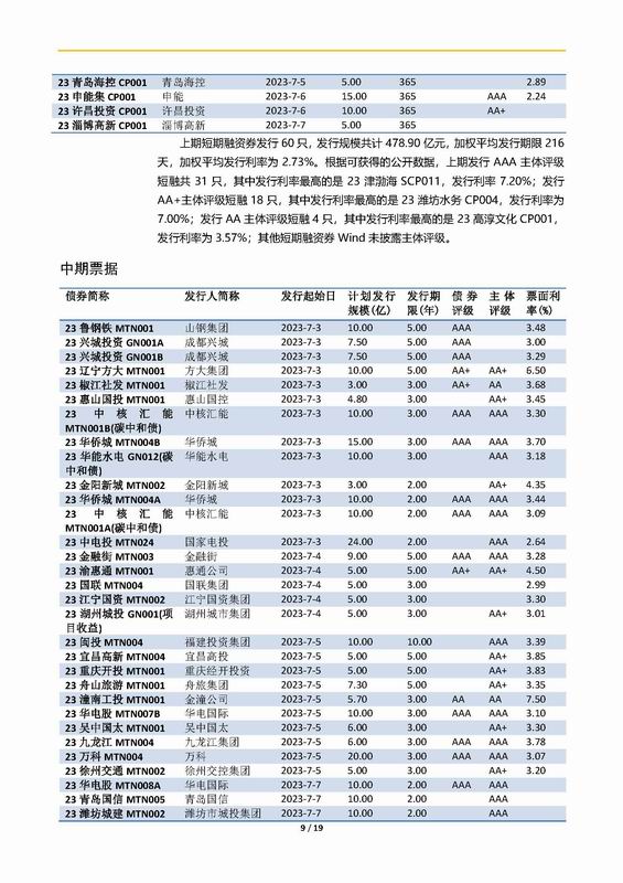 | 當前位置:新聞中心 > 上實-融資工具周報2023.7.3-2023.7.7 | |||||
